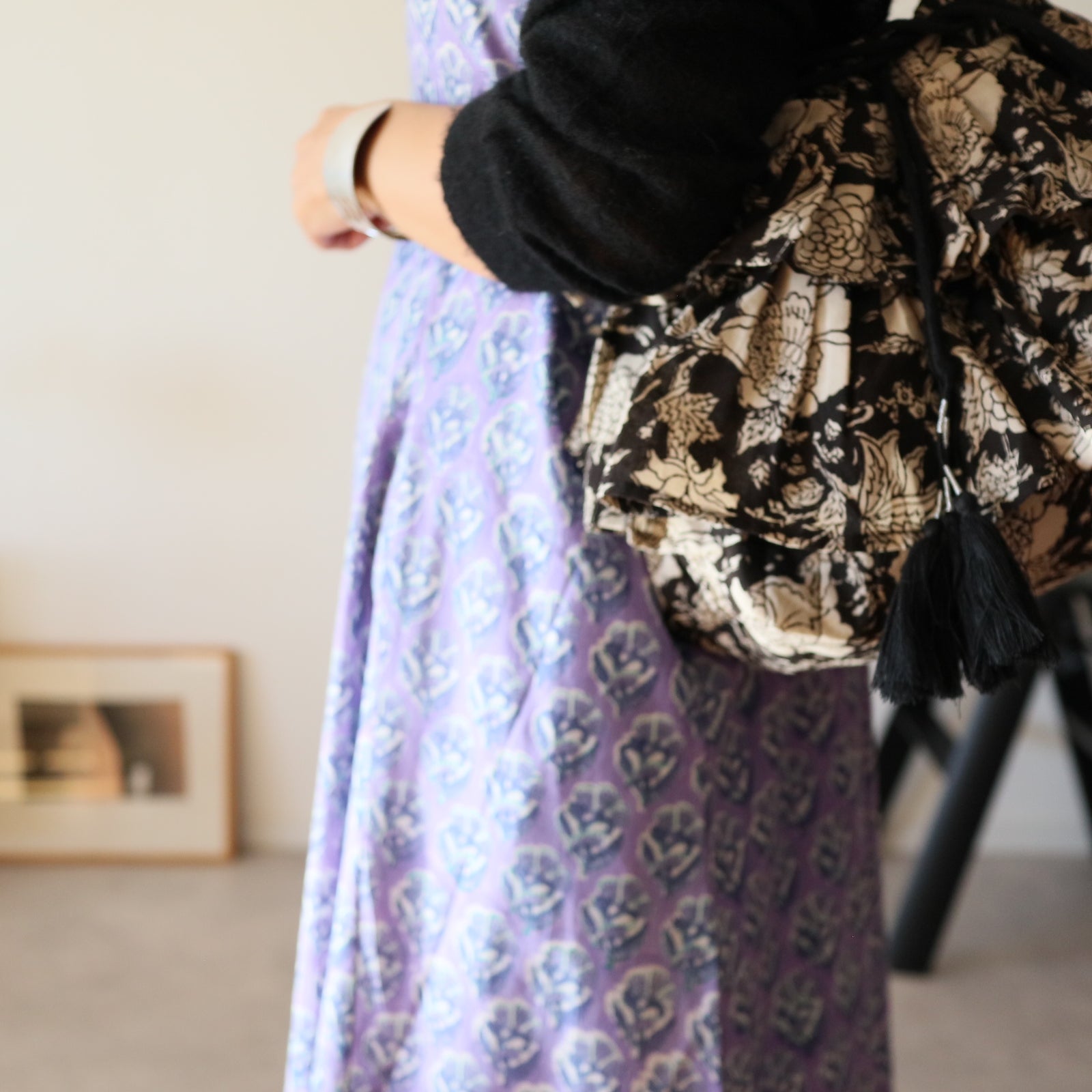 日本から遠く離れたインドの工房で一から全ての工程を一枚一枚プロの職人さんが仕立てた、ハンドブロックプリントワンピース。