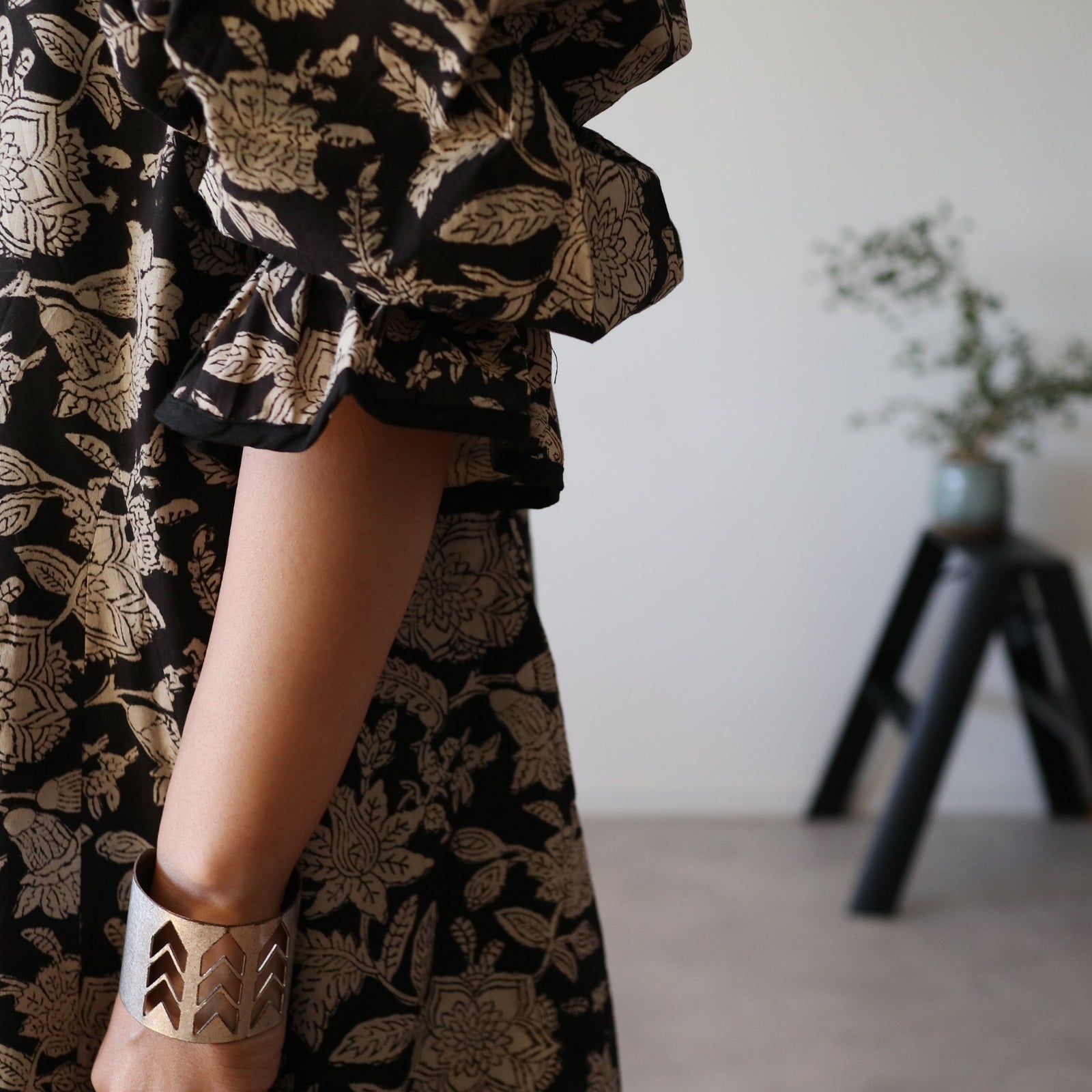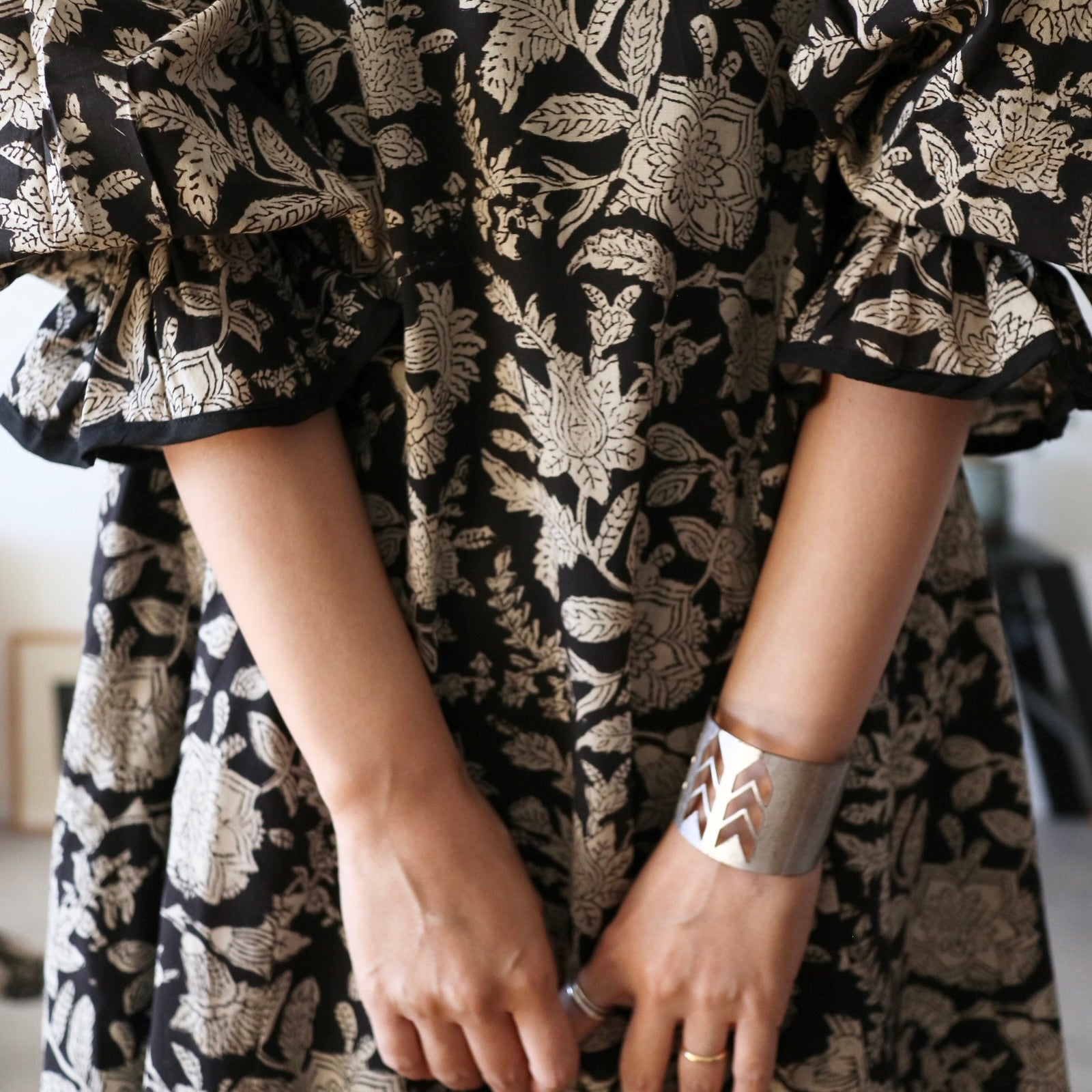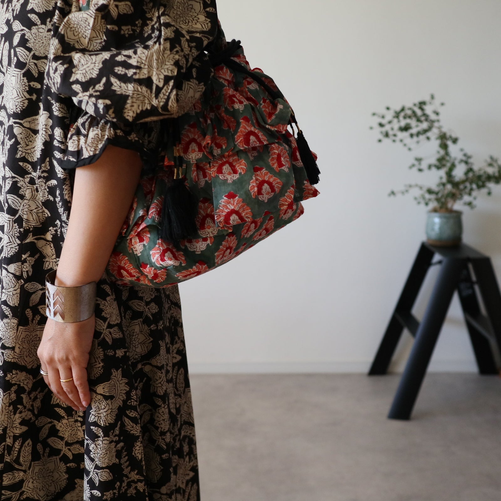 日本から遠く離れたインドの工房で一から全ての工程を一枚一枚プロの職人さんが仕立てた、ハンドブロックプリントワンピース。