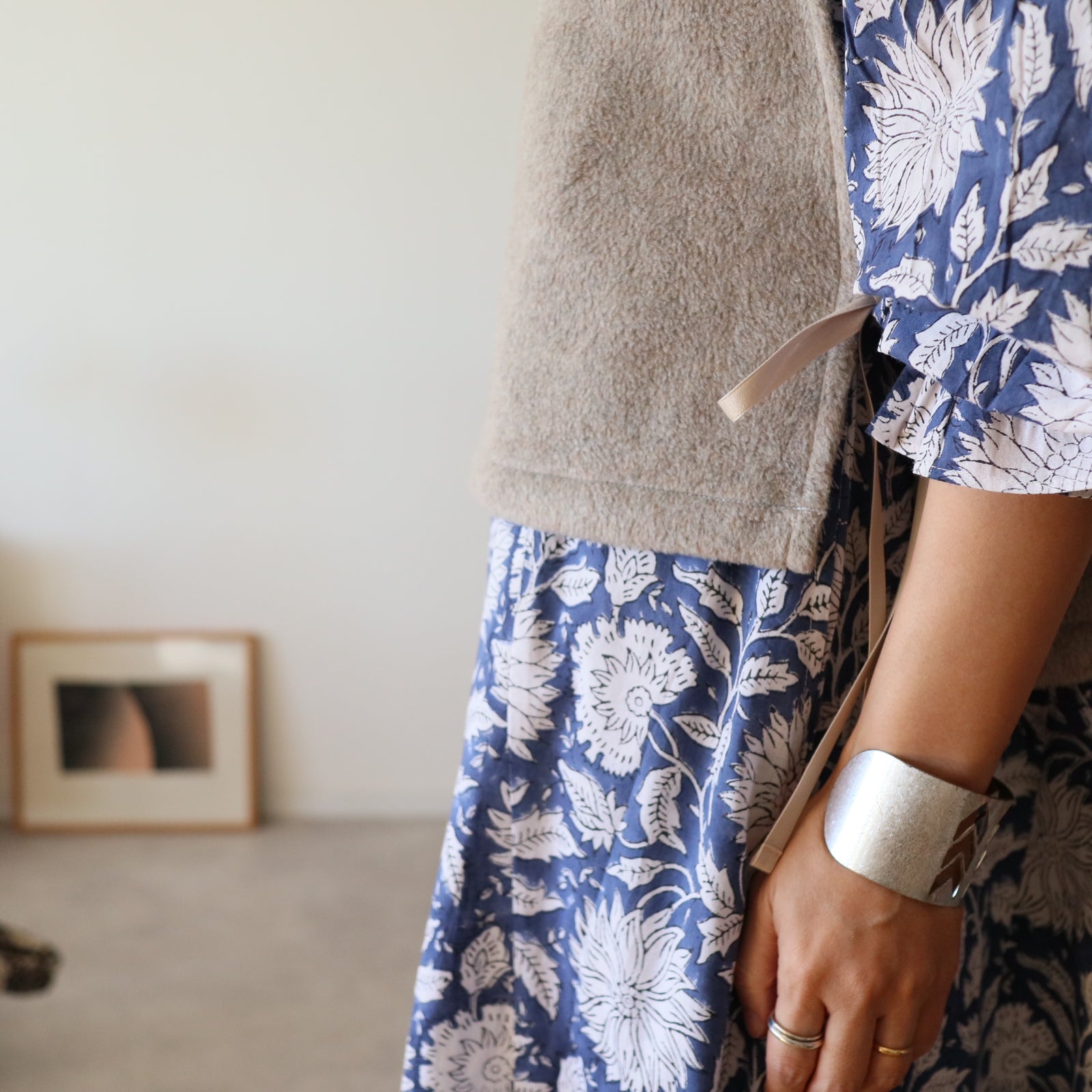 きつすぎないサイジングでリラックス。でも広がりすぎないシルエットを。柔らかくてふわりと軽いインド綿は裏地付きだから、一枚で完成する主役服。春夏だけで無く、秋もずーっと。冬はレイヤードを楽しんで。