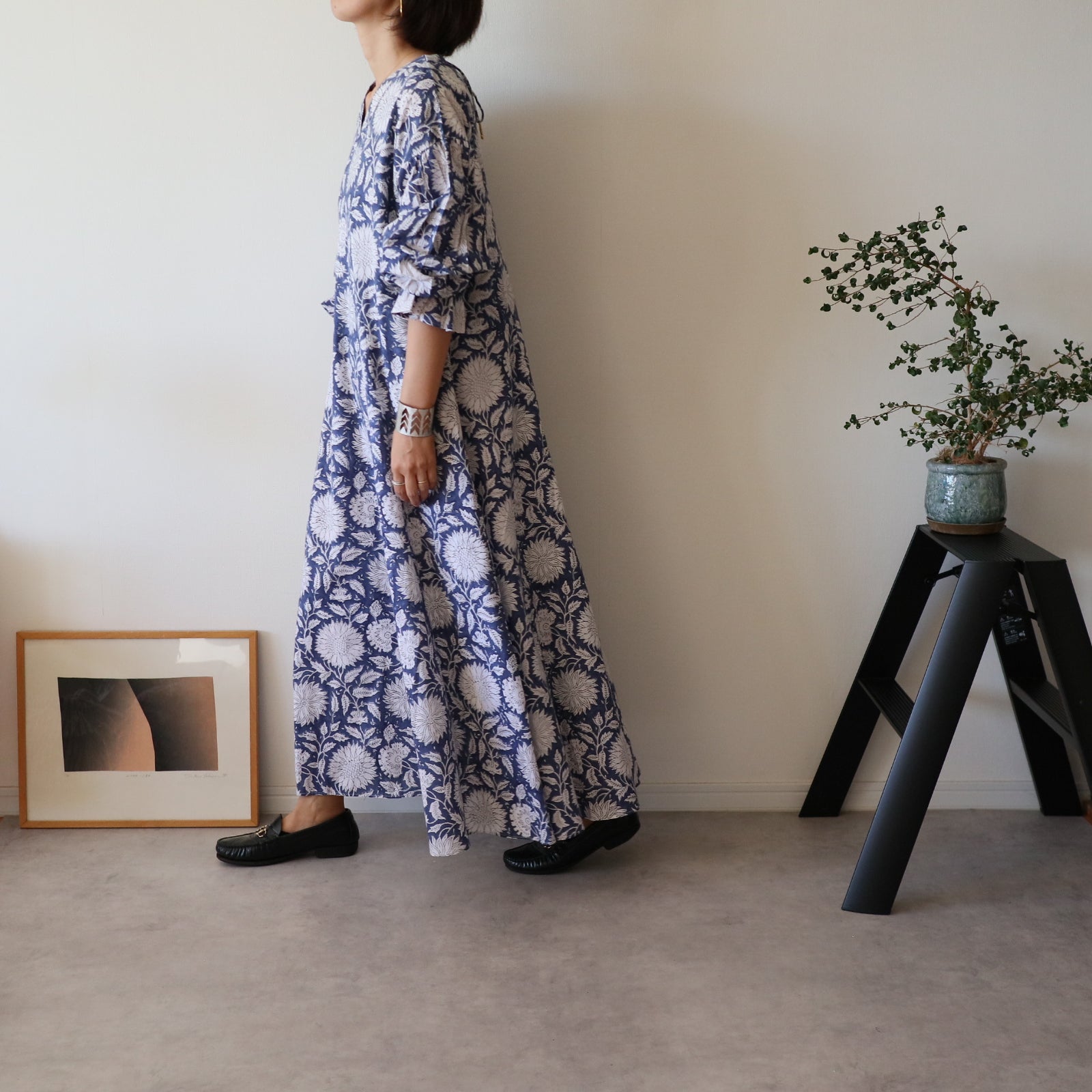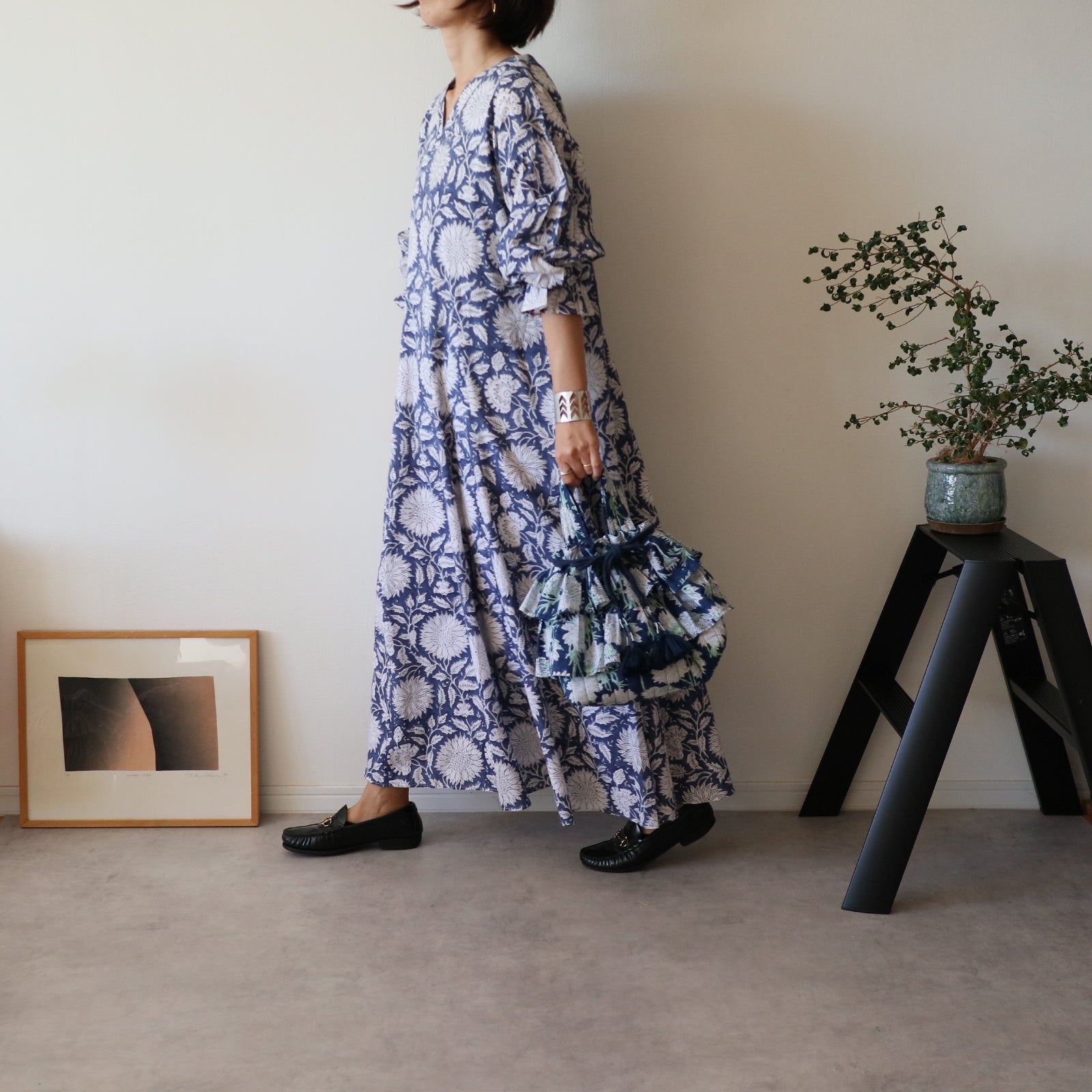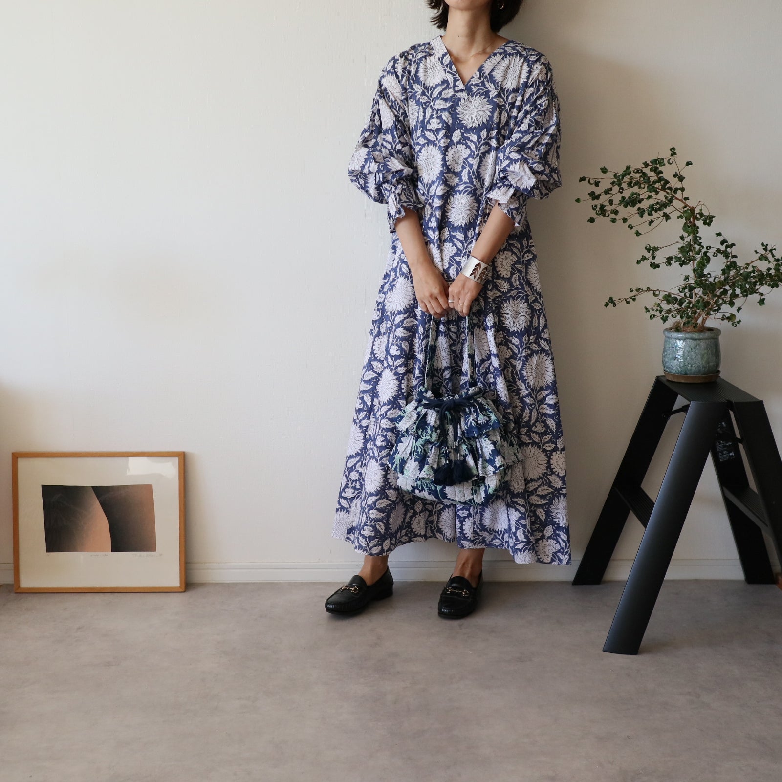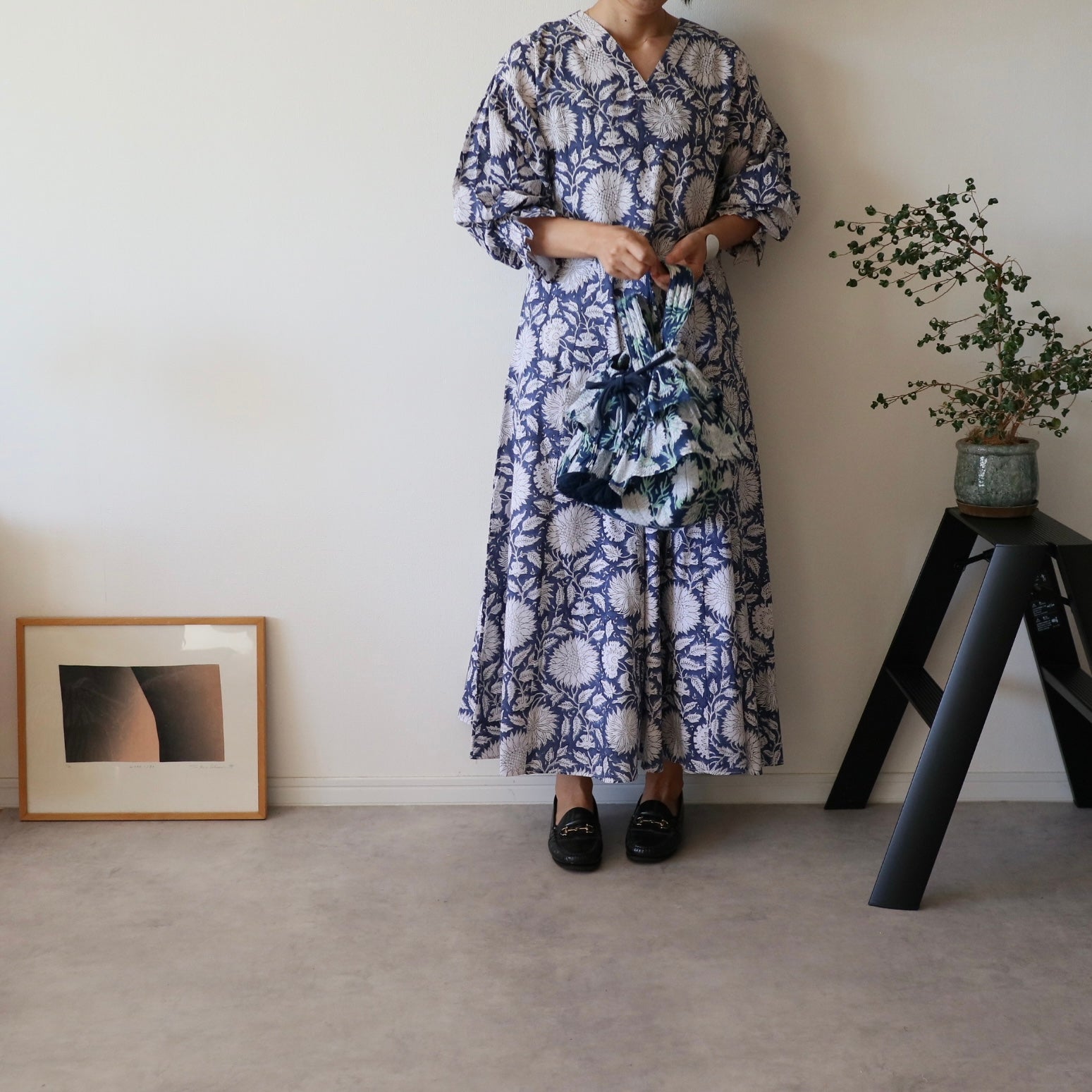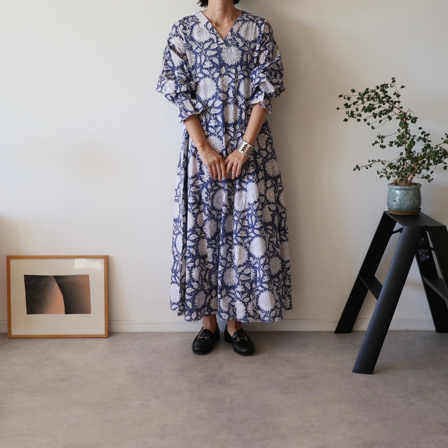 日本から遠く離れたインドの工房で一から全ての工程を一枚一枚プロの職人さんが仕立てた、ハンドブロックプリントワンピース。