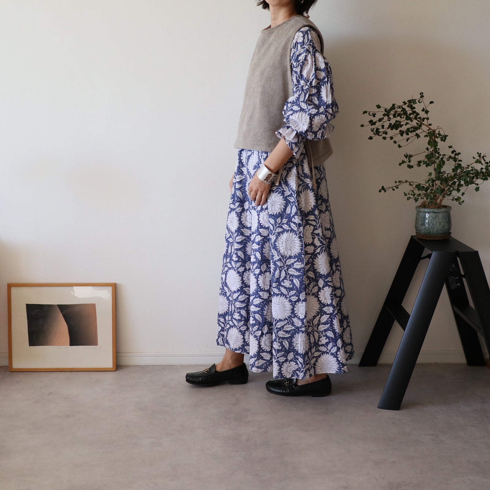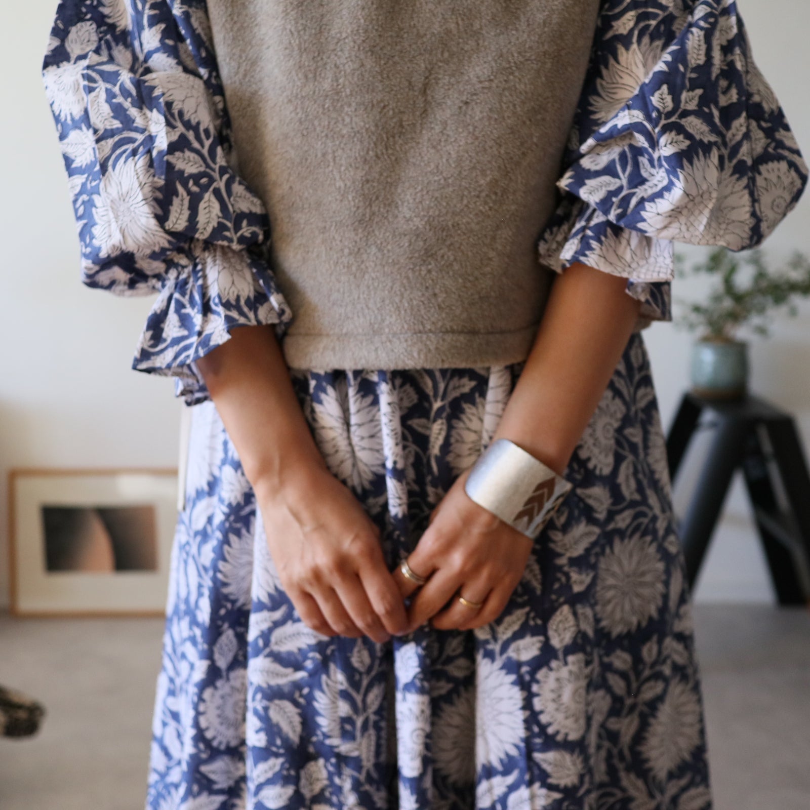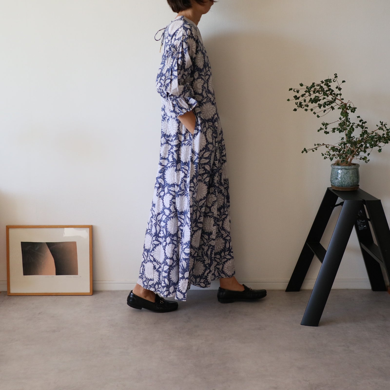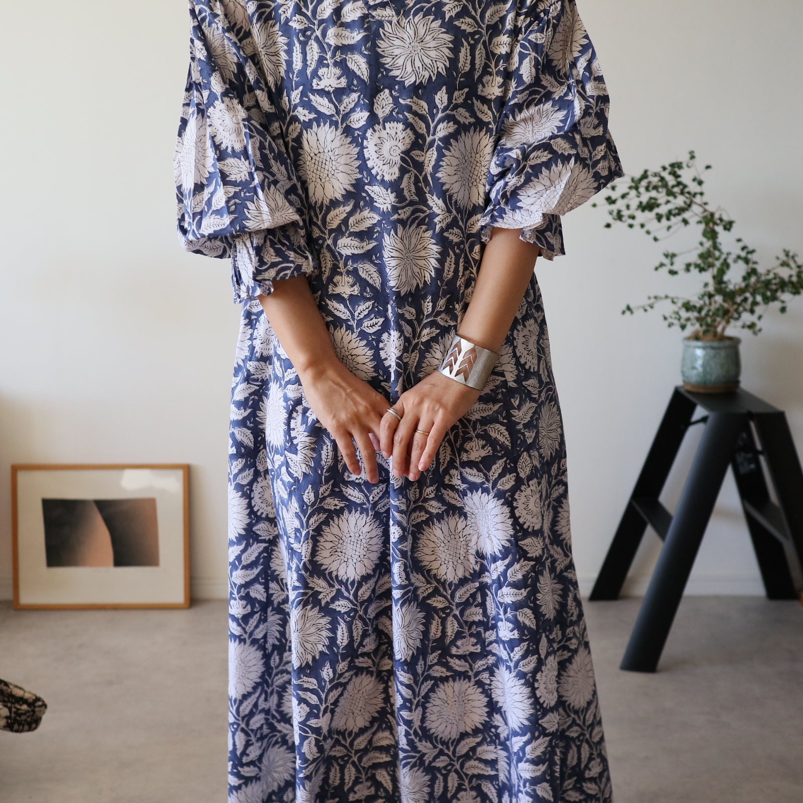 日本から遠く離れたインドの工房で一から全ての工程を一枚一枚プロの職人さんが仕立てた、ハンドブロックプリントワンピース。