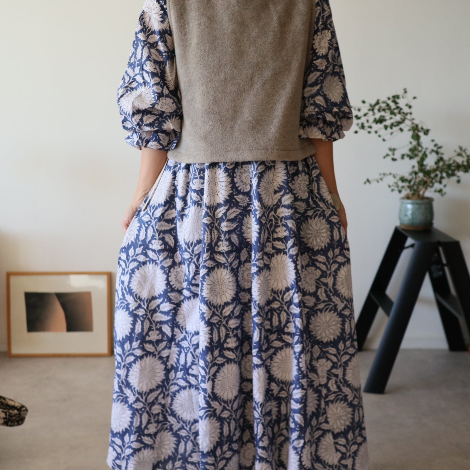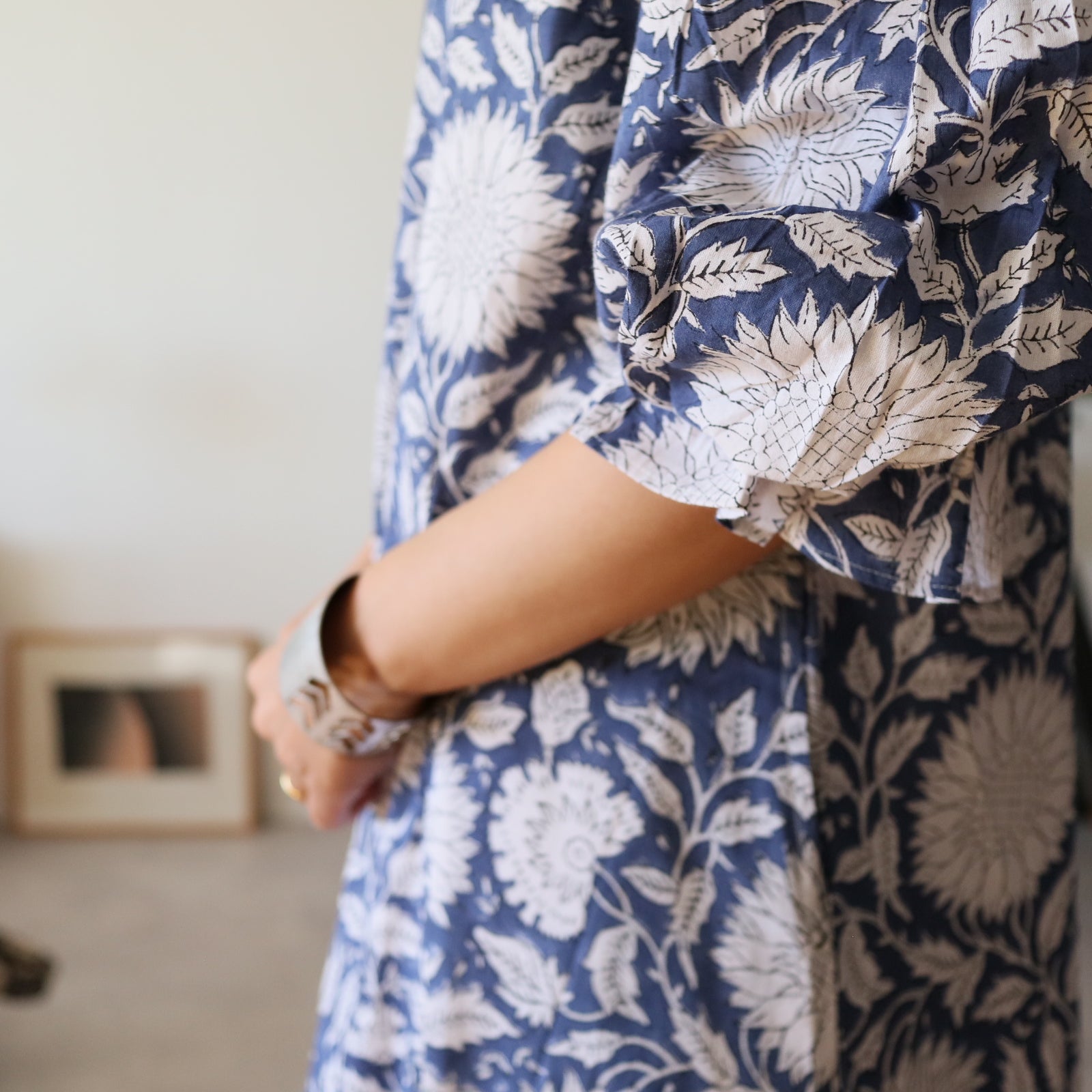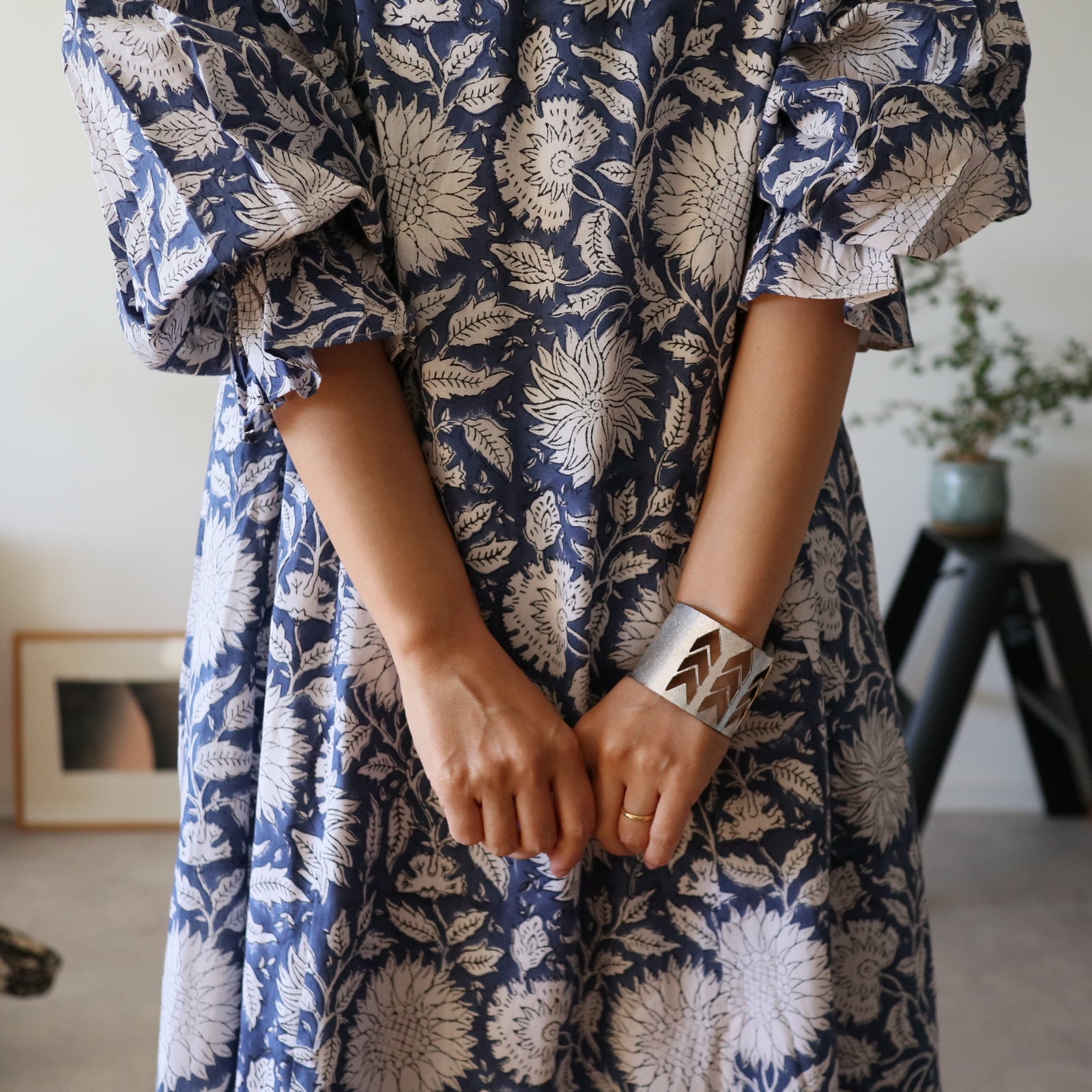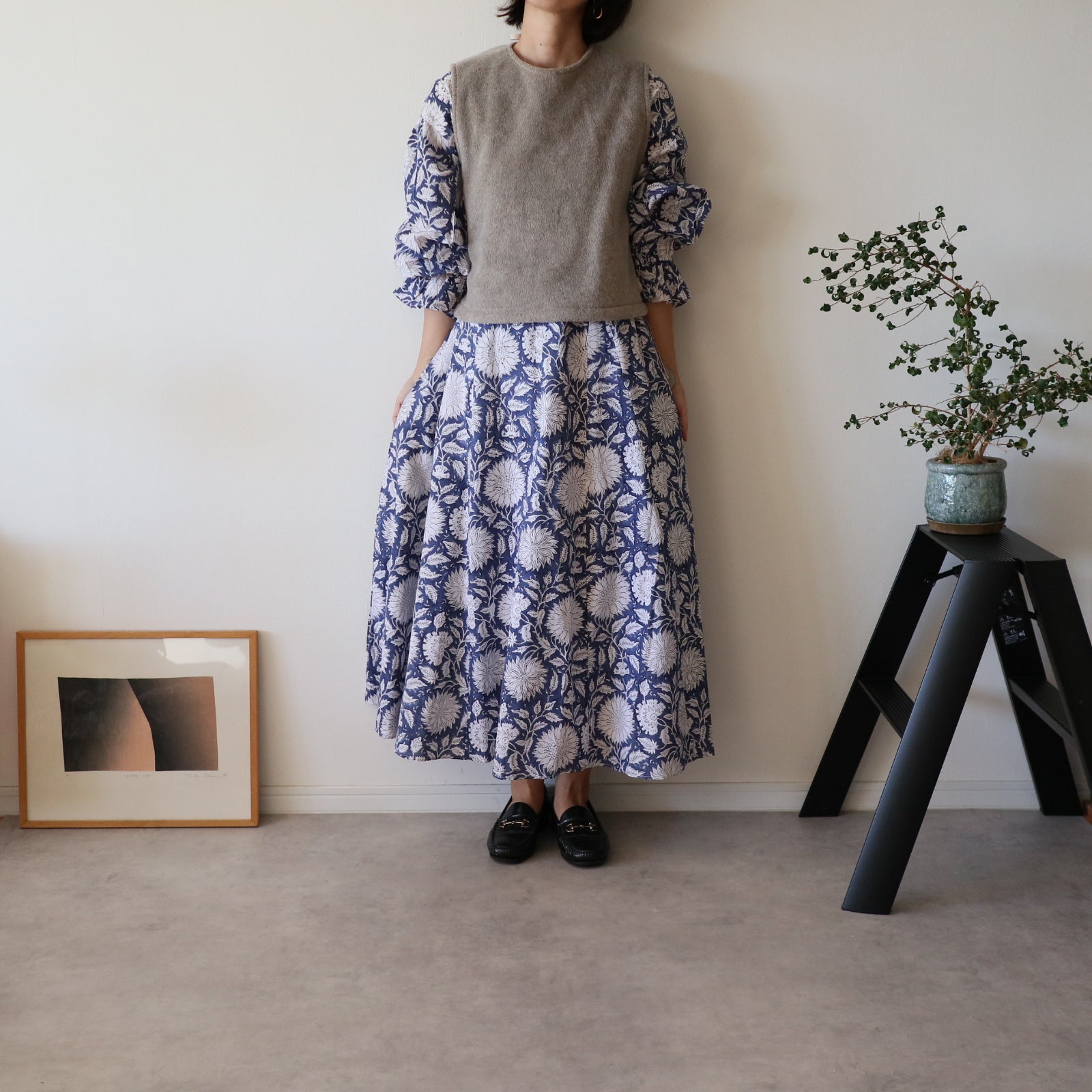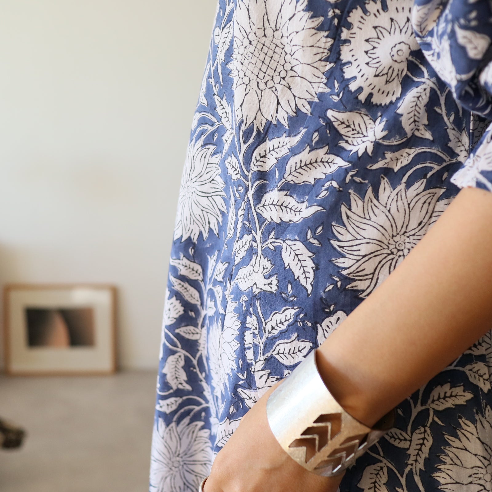 日本から遠く離れたインドの工房で一から全ての工程を一枚一枚プロの職人さんが仕立てた、ハンドブロックプリントワンピース。