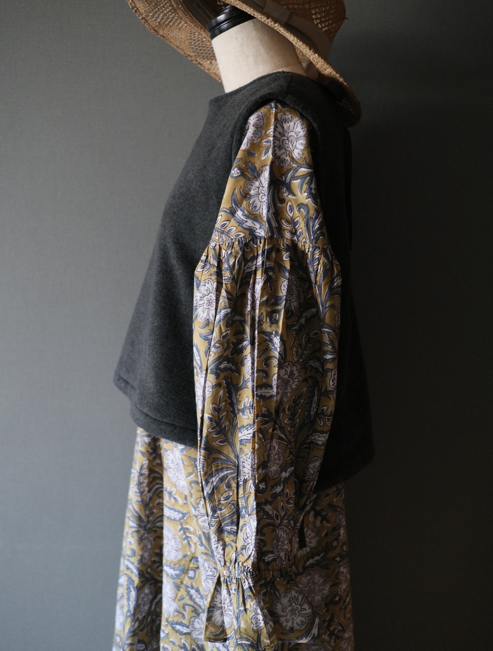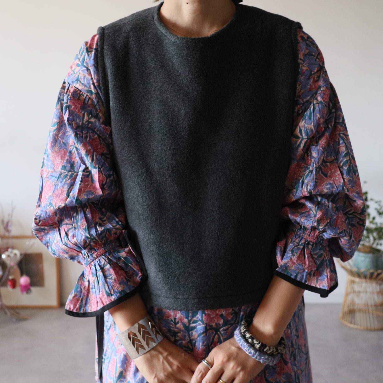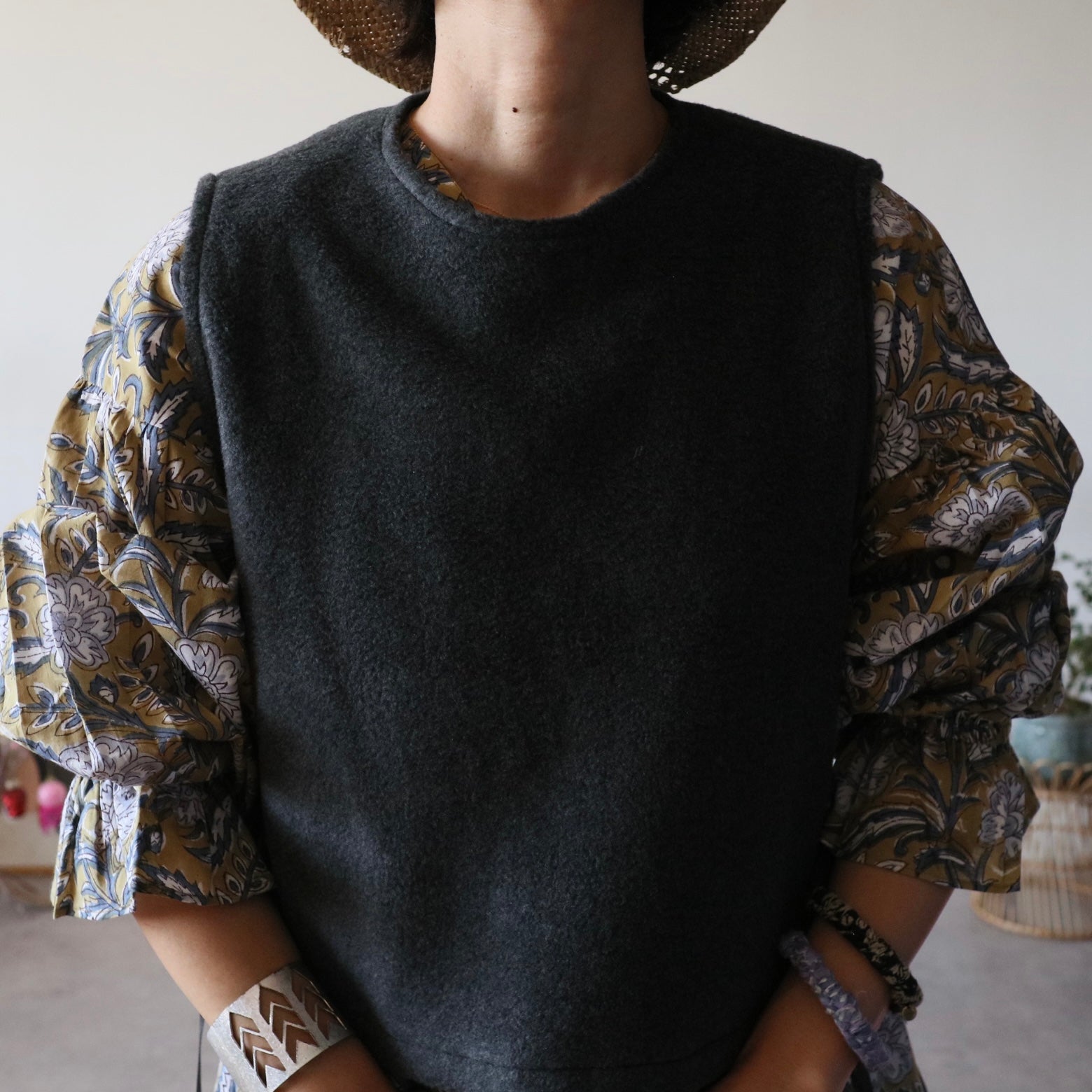"寒い季節もインド綿をめいっぱい楽しみたい!"という私の想いから【ふんわりあたたかサイドリボンベスト】が出来上がりました。