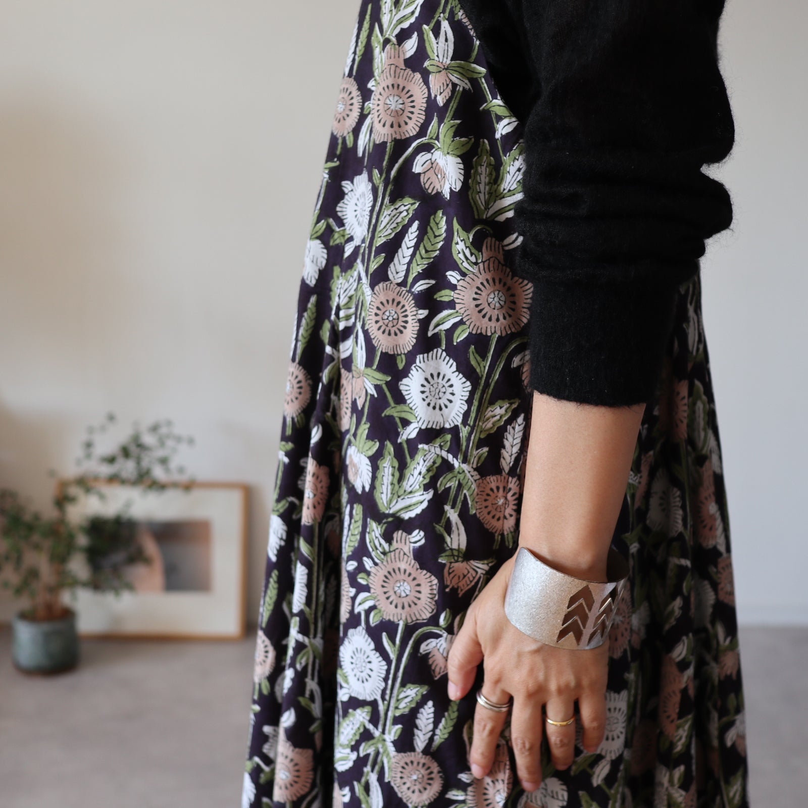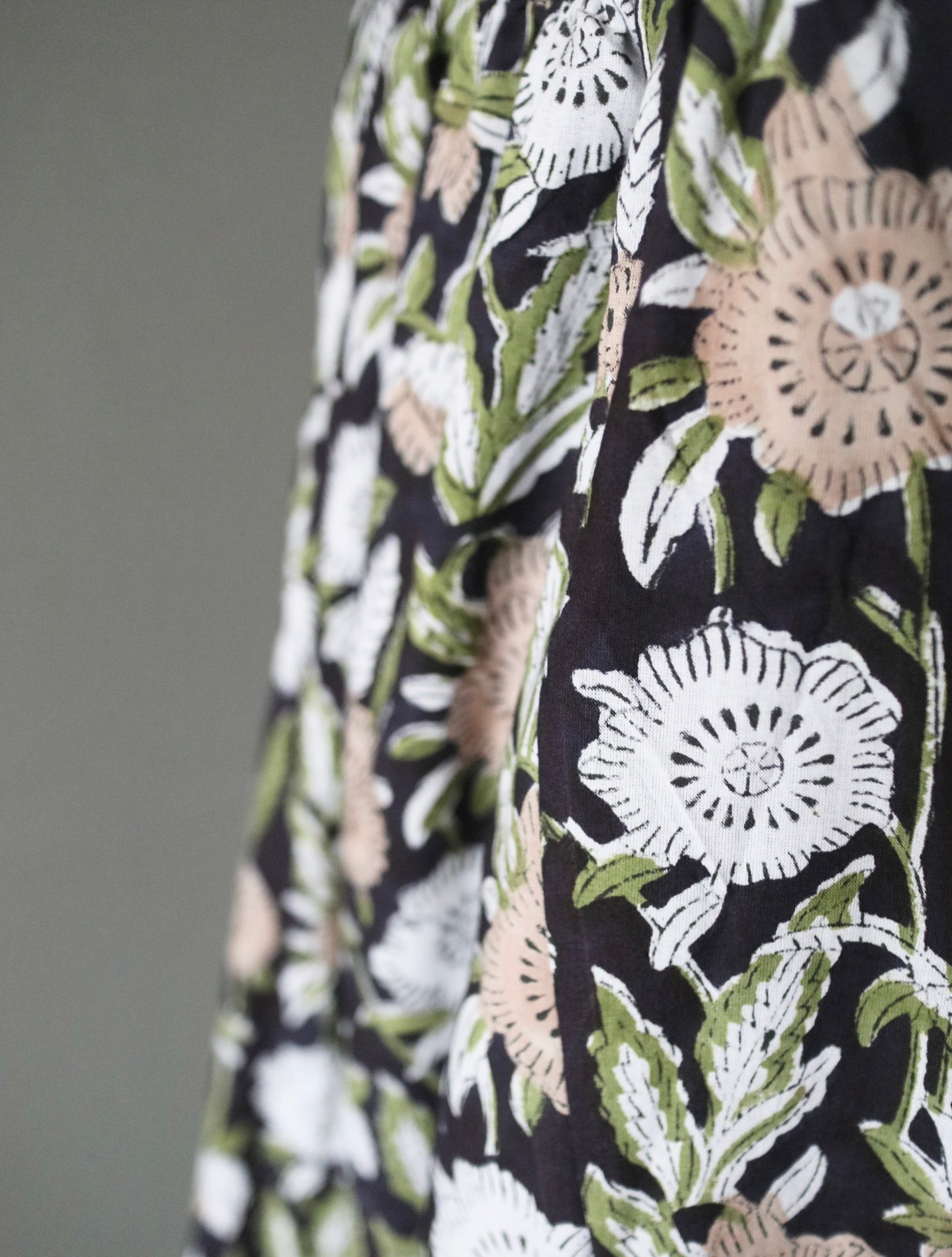 日本から遠く離れたインドの工房で一から全ての工程を一枚一枚プロの職人さんが仕立てた、ハンドブロックプリントワンピース。
