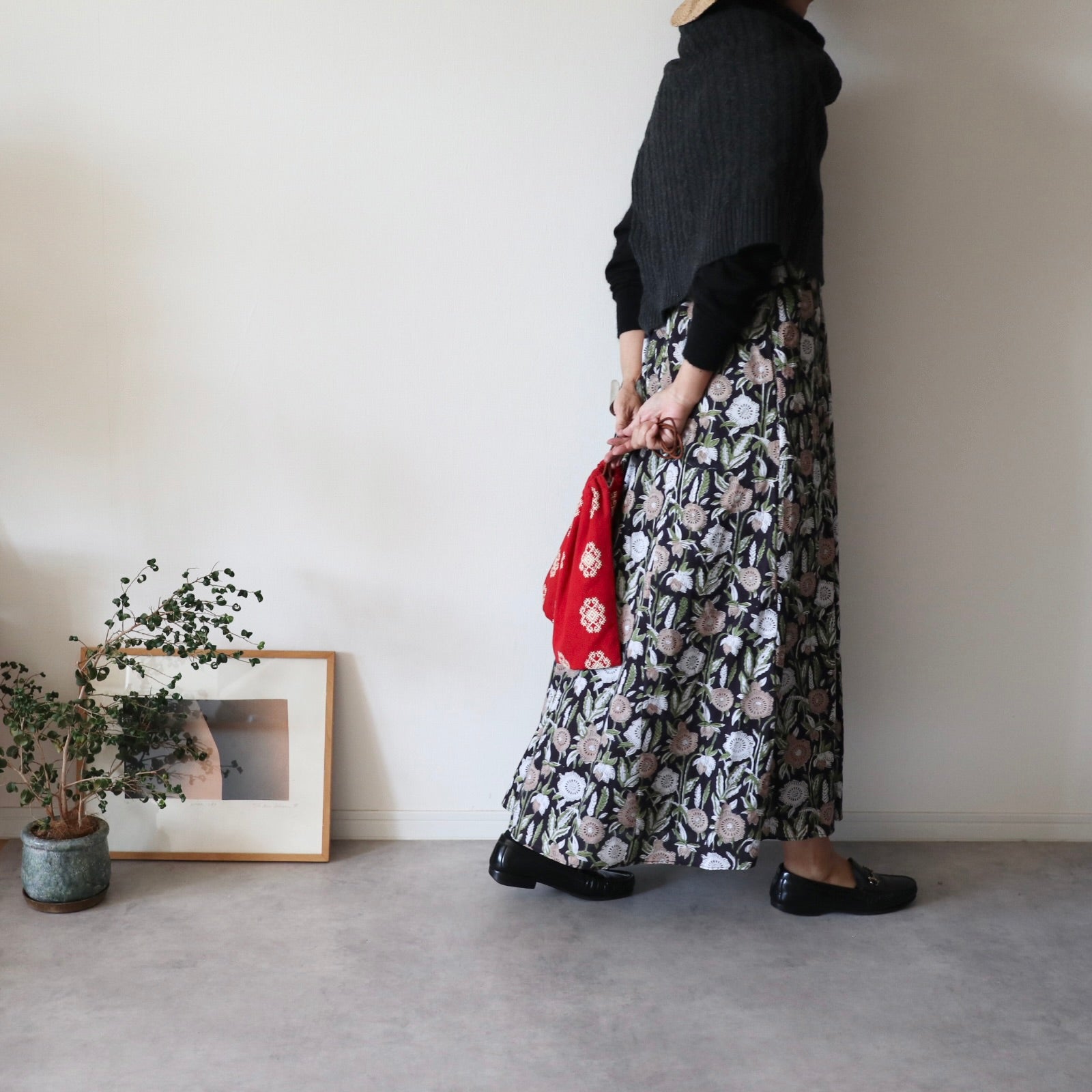 ジャムダニ織は職人さんが驚くほど細い糸で模様を1針1針織り込みながら生地にしていきます。糸のほつれや飛び出し、織りむら、ネップの強い箇所がありますが、それは糸のつむぎ手が途中で変わったり織り手の癖が出るためです。当店のジャムダニ織はスカートは裾とウエストの端はデザインを生かす為処理をしておりません。この時代に手織りの布を纏うこと。機械では表せない温かみのある模様や360度表情の変わる美しいデザインを是非お楽しみください。
