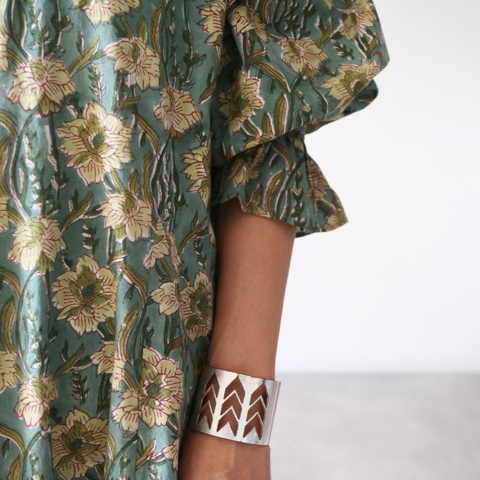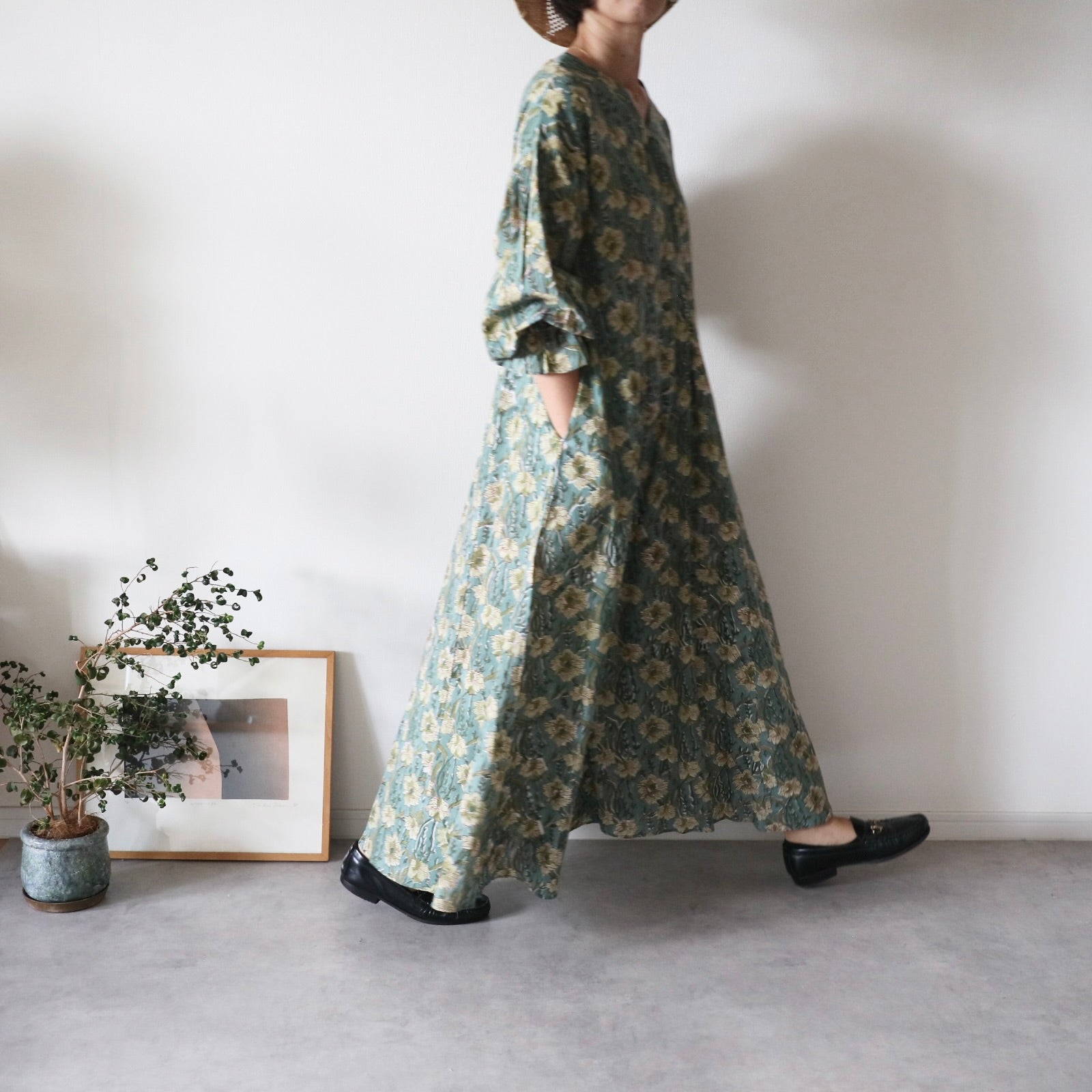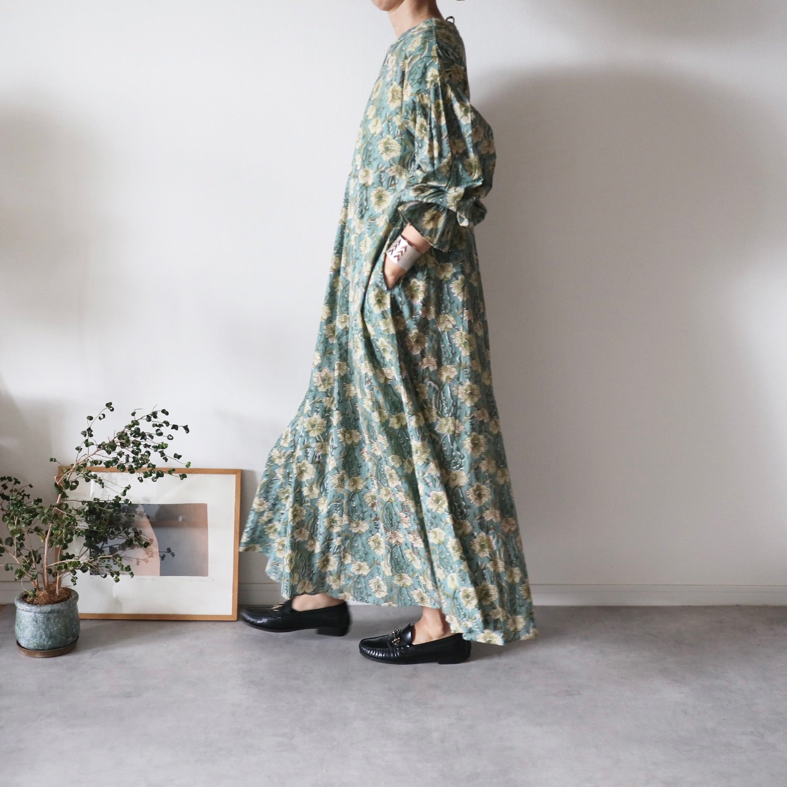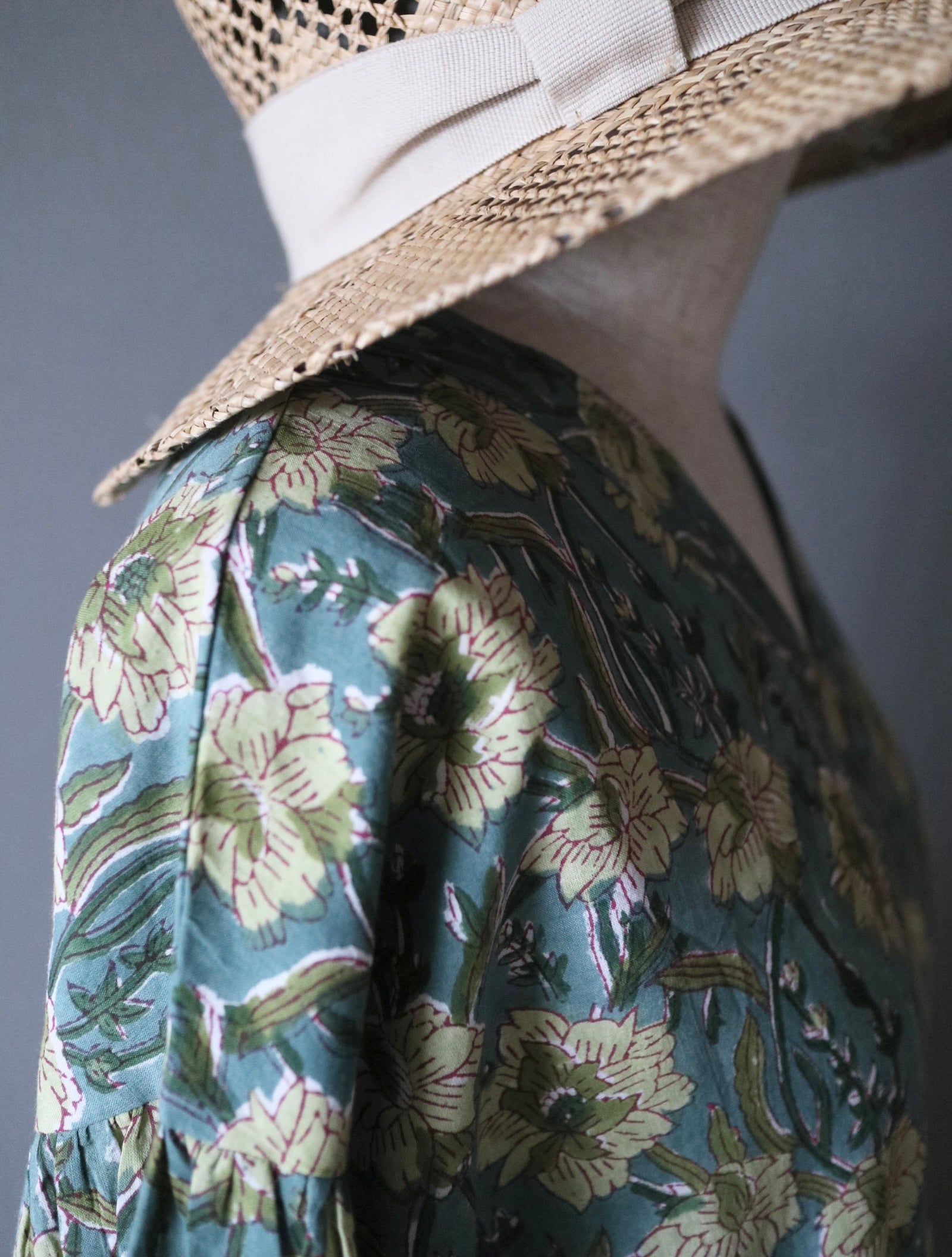 日本から遠く離れたインドの工房で一から全ての工程を一枚一枚プロの職人さんが仕立てた、ハンドブロックプリントワンピース。