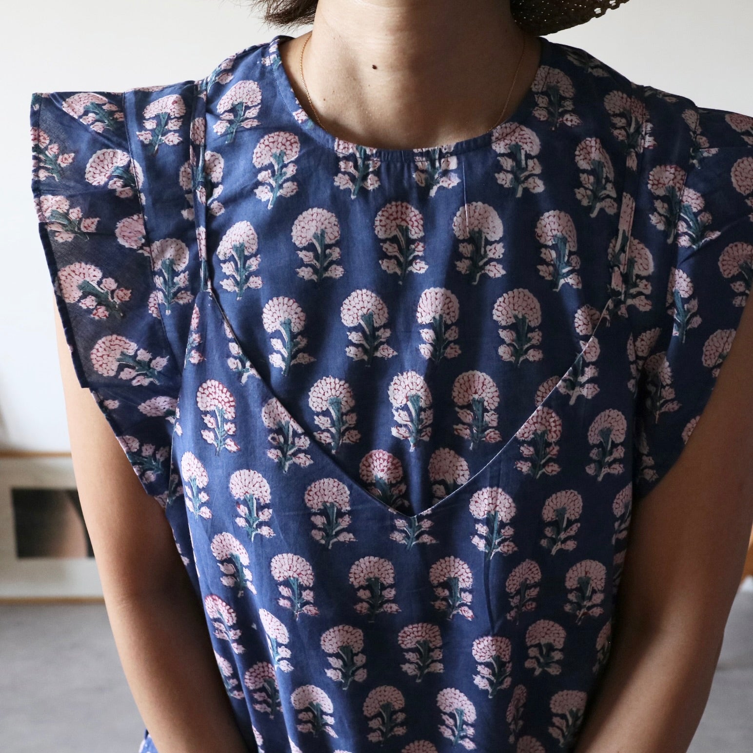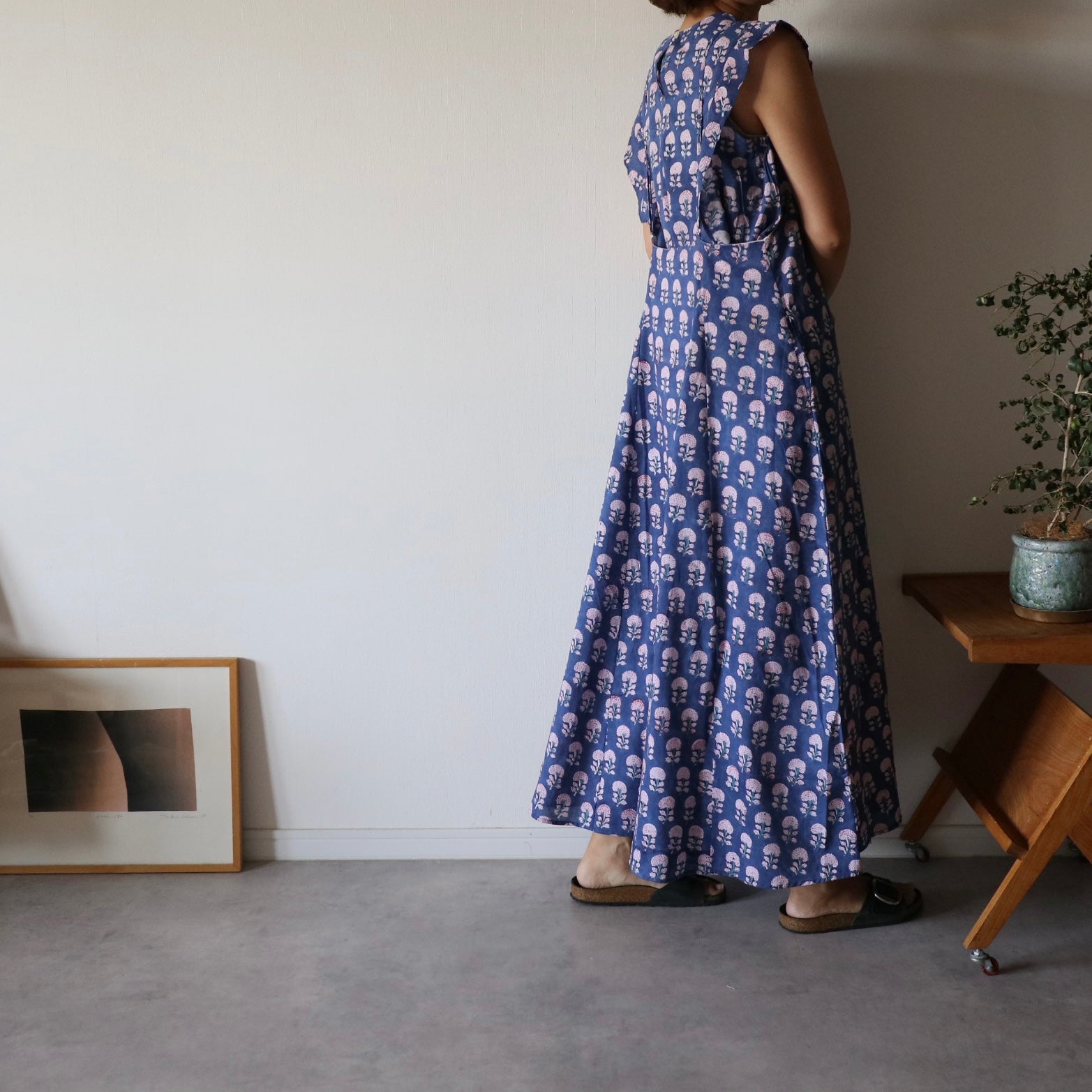 日本から遠く離れたインドの工房で一から全ての工程を一枚一枚プロの職人さんが仕立てた、ハンドブロックプリントワンピース。