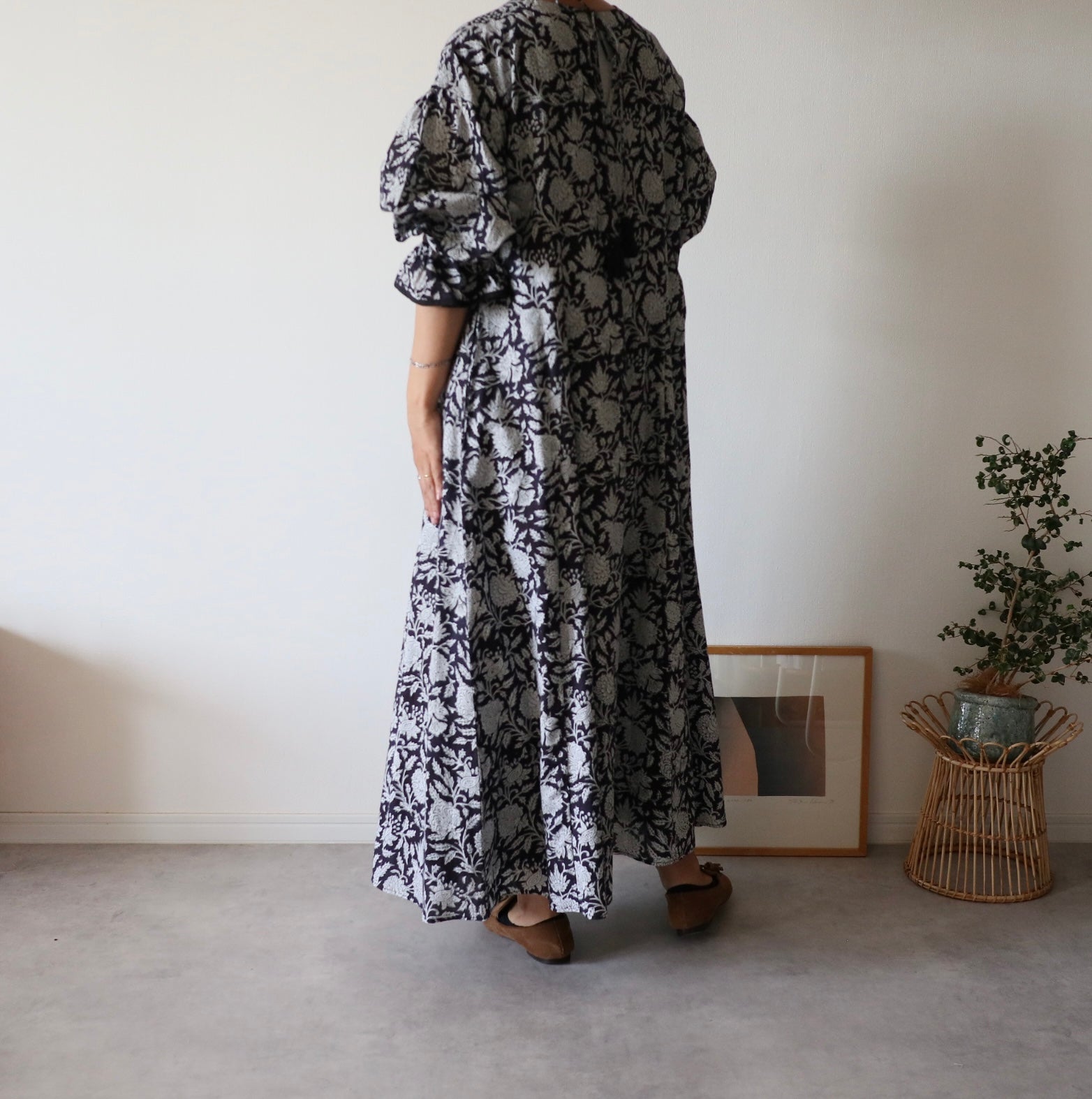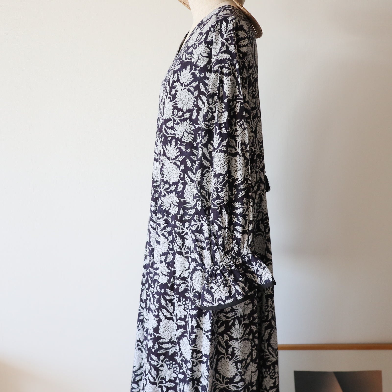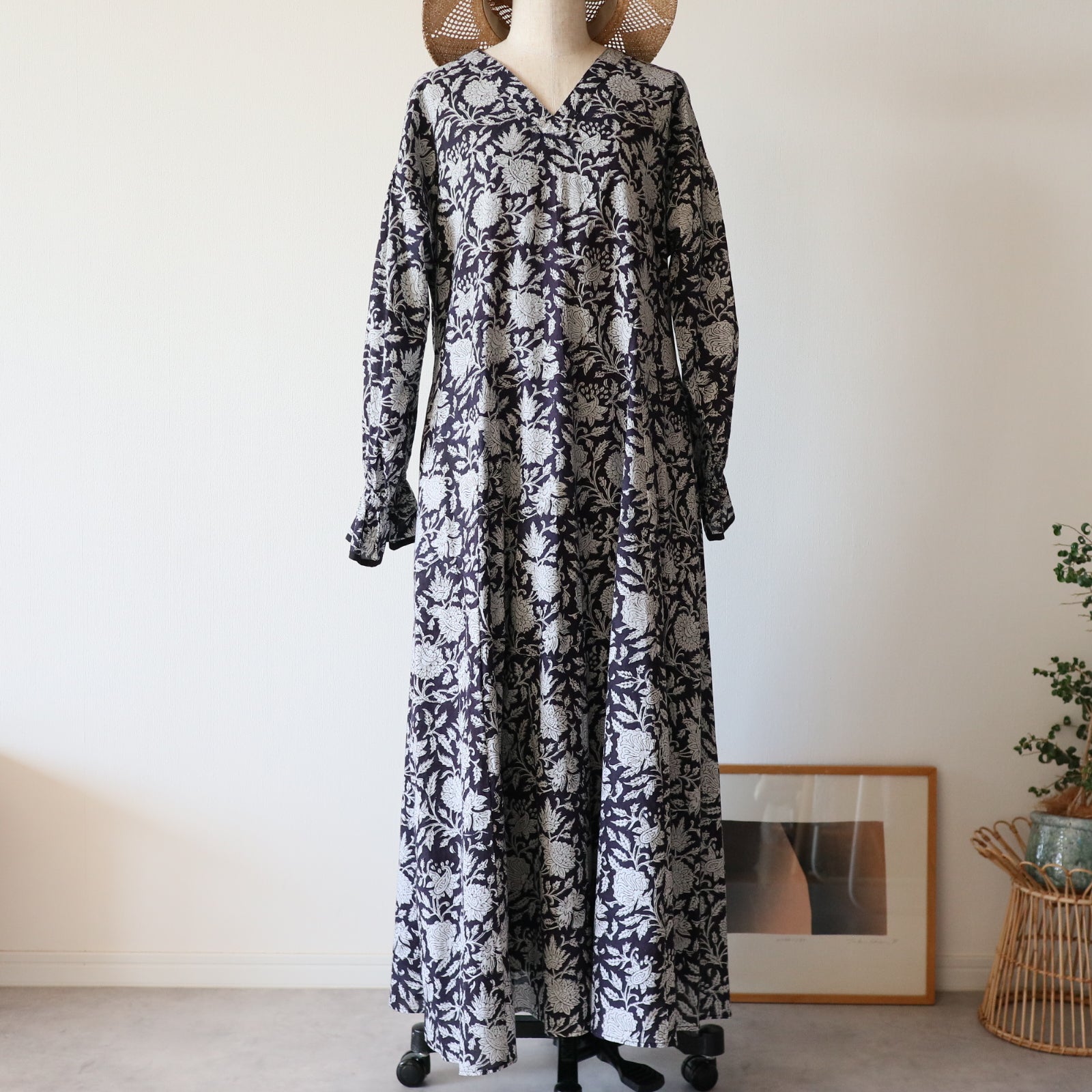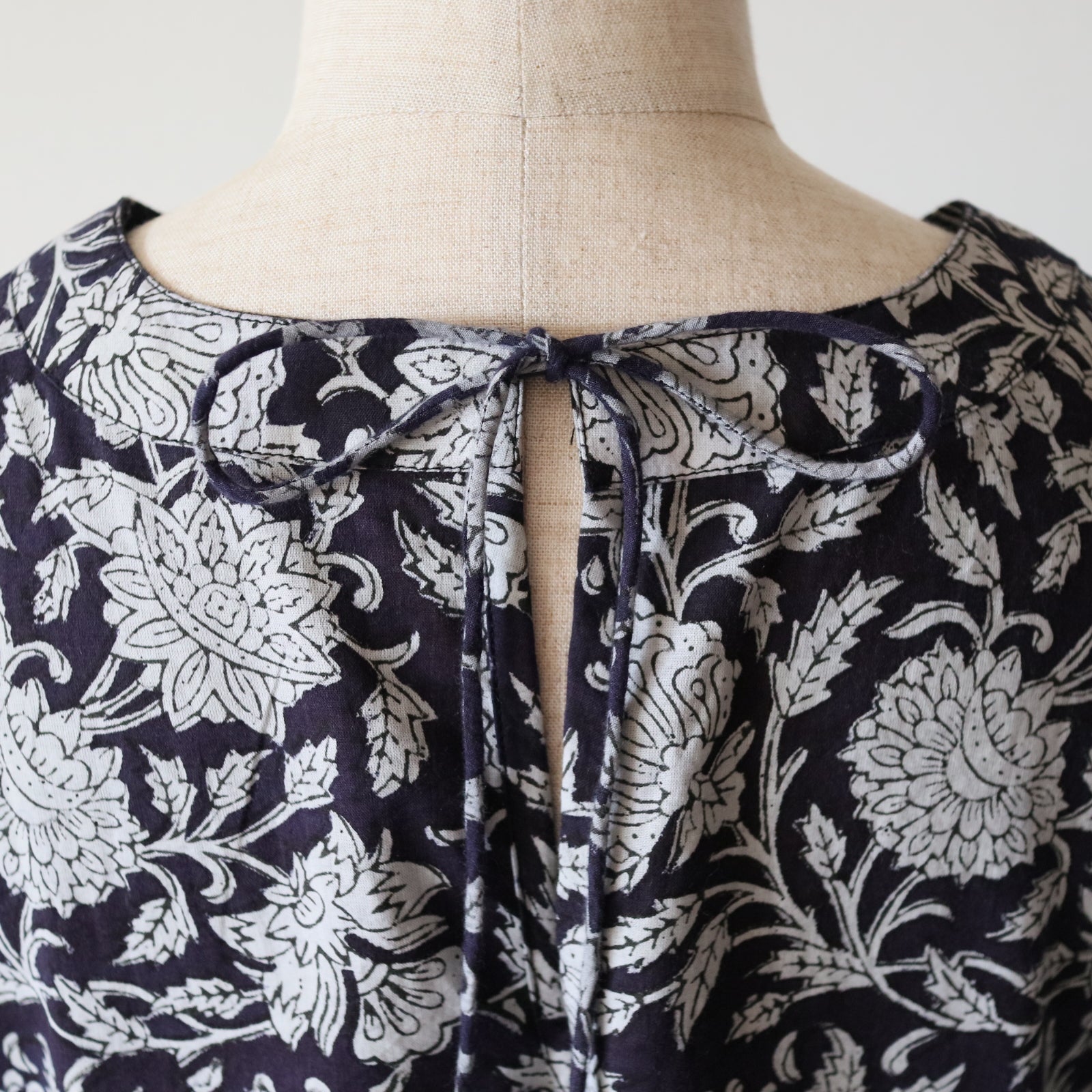 日本から遠く離れたインドの工房で一から全ての工程を一枚一枚プロの職人さんが仕立てた、ハンドブロックプリントワンピース。