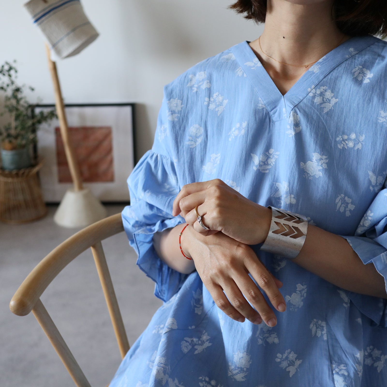 日本から遠く離れたインドの工房で一から全ての工程を一枚一枚プロの職人さんが仕立てた、ハンドブロックプリントワンピース。