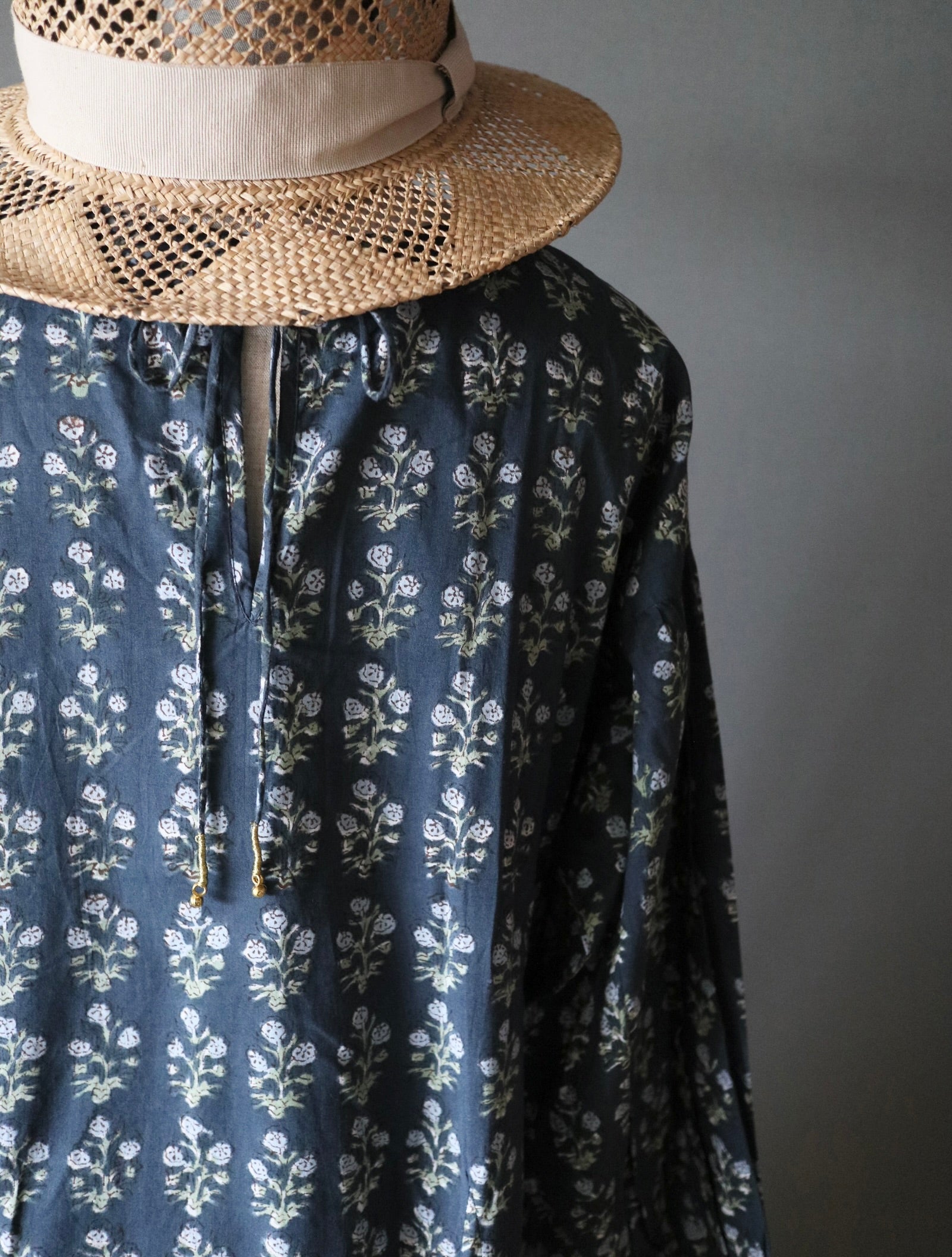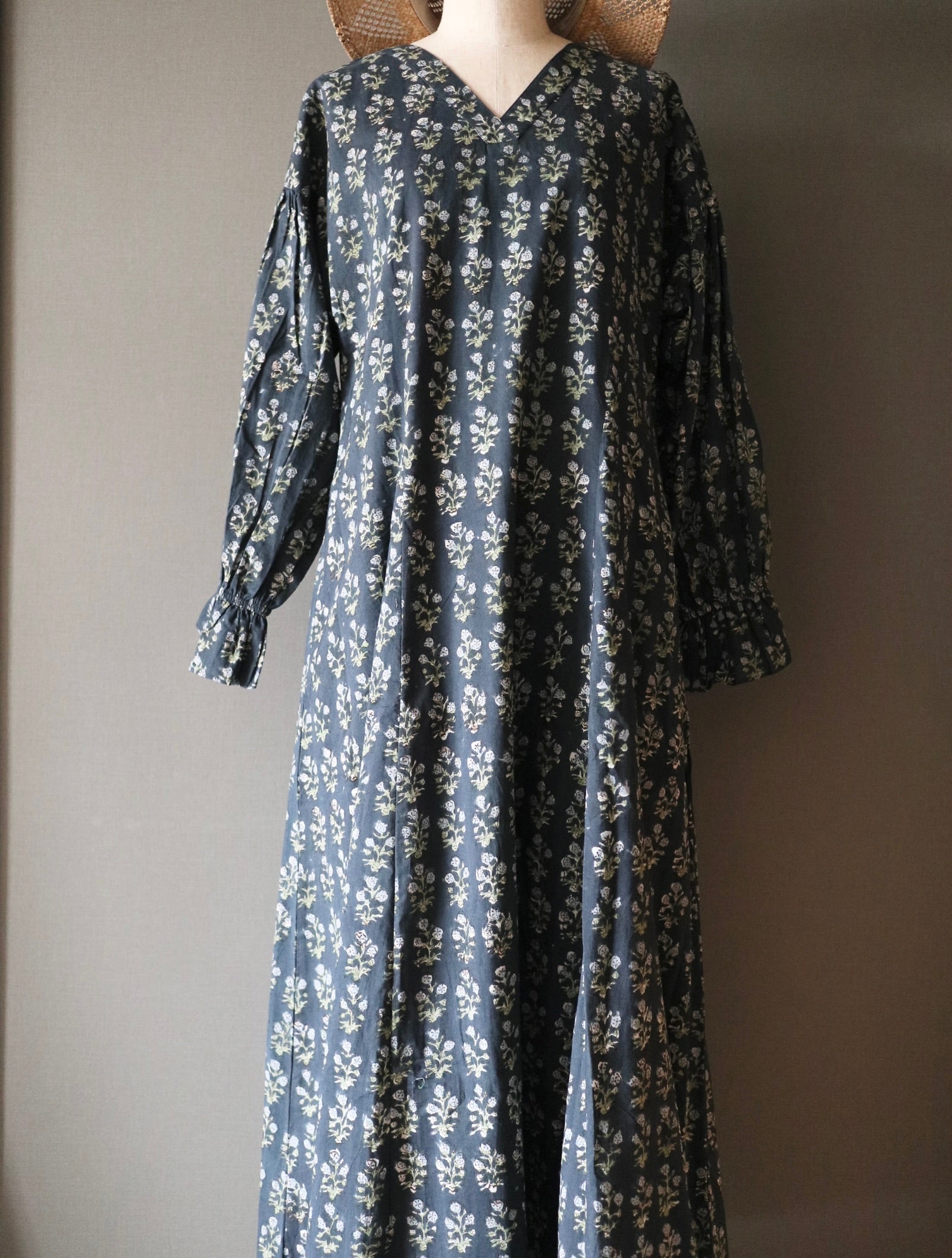 日本から遠く離れたインドの工房で一から全ての工程を一枚一枚プロの職人さんが仕立てた、ハンドブロックプリントワンピース。