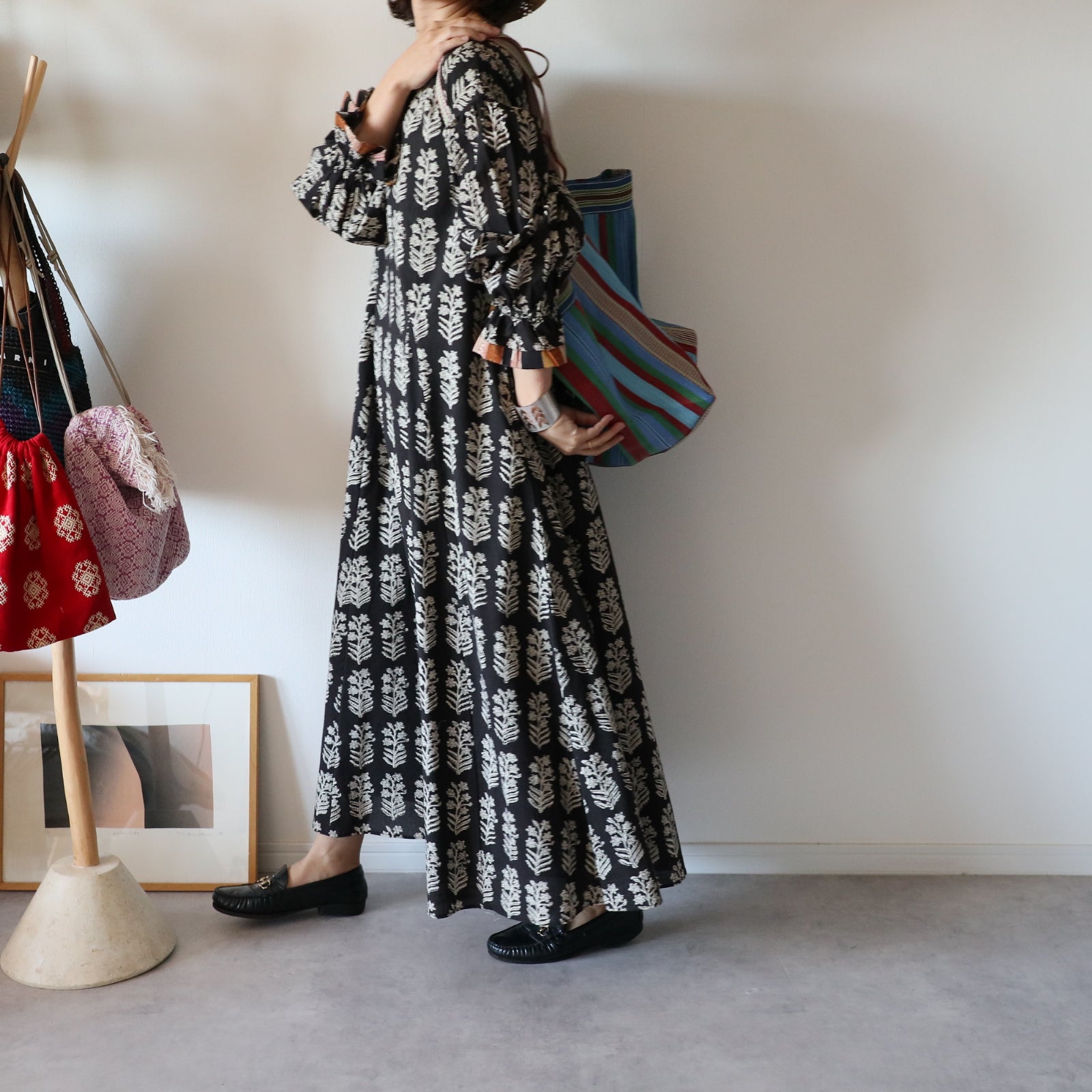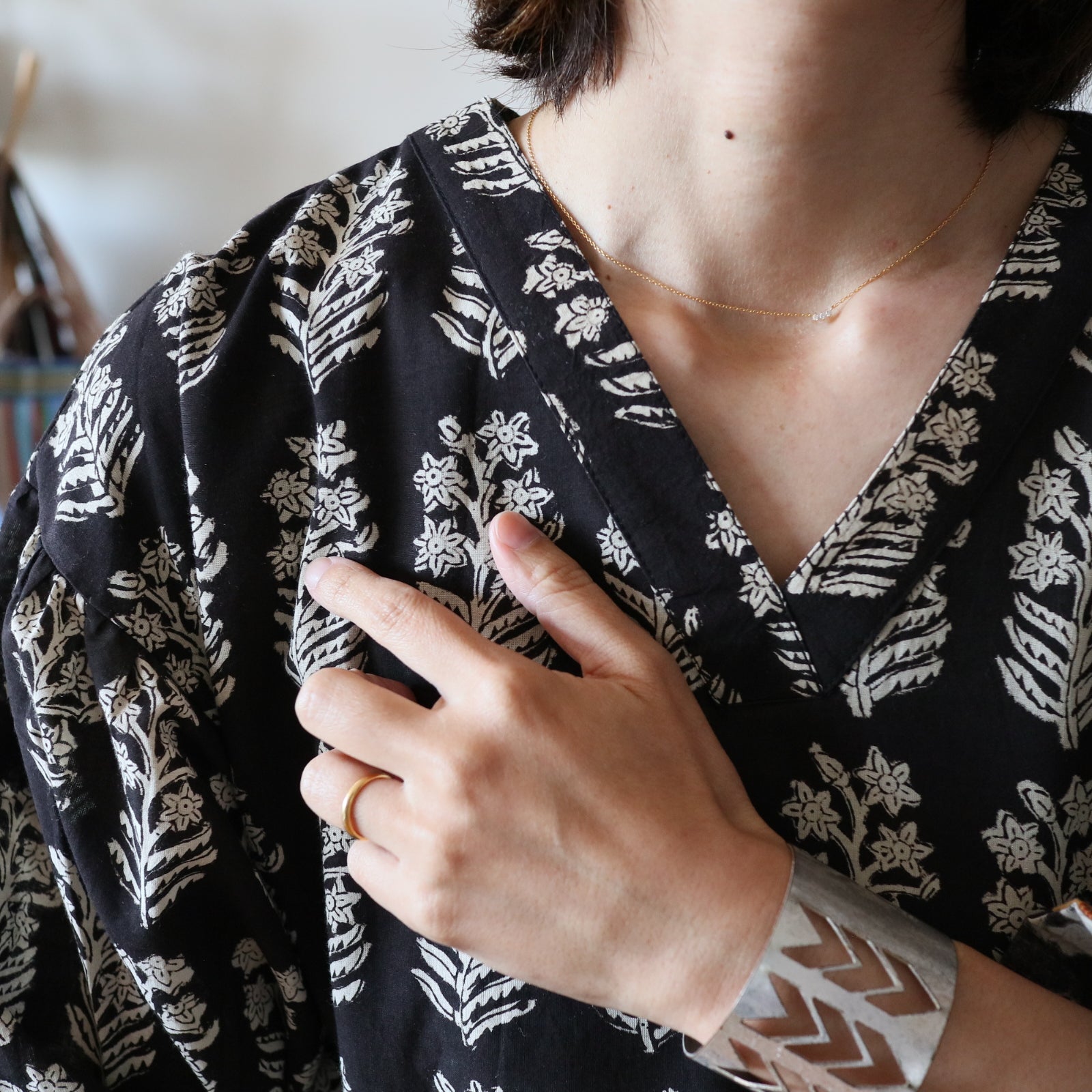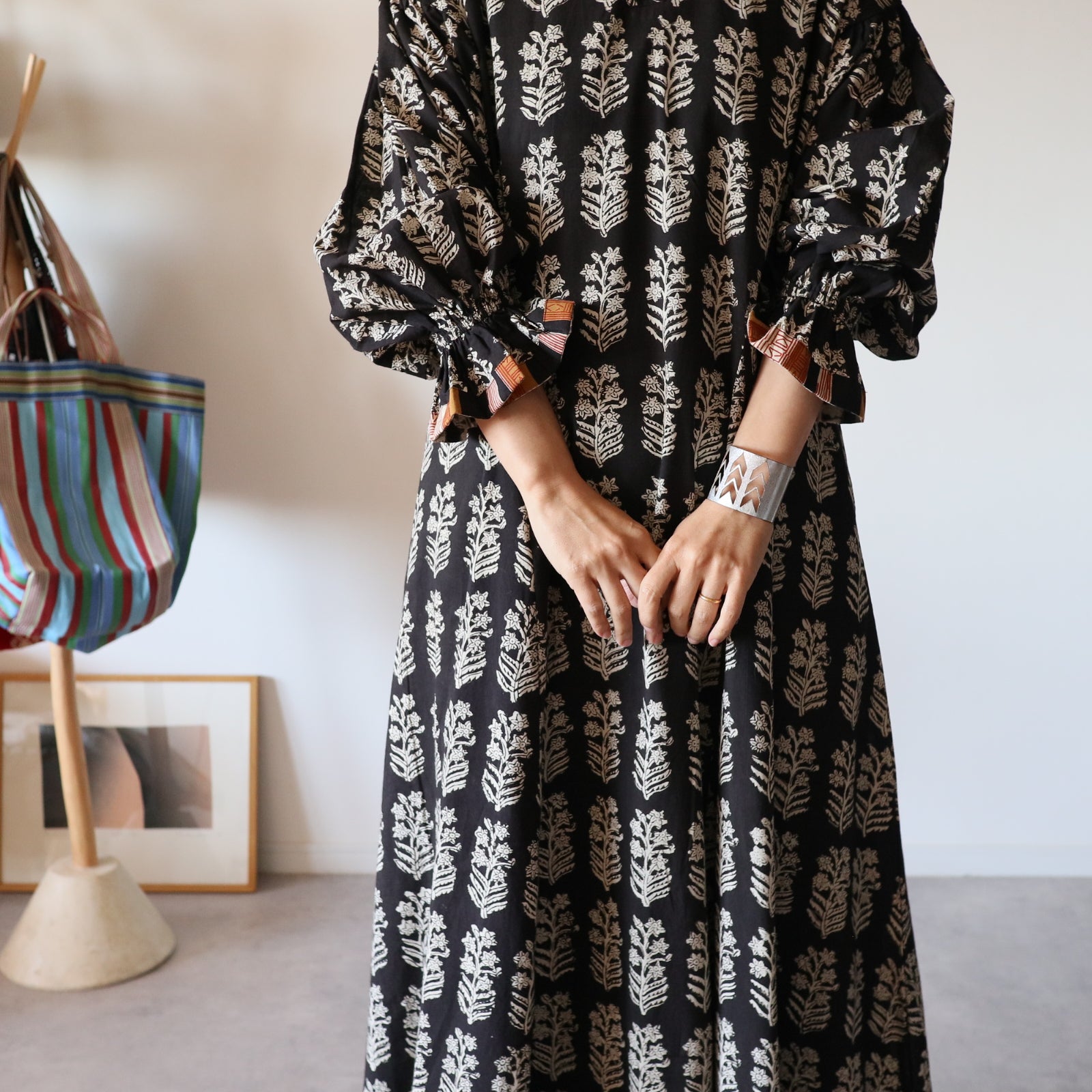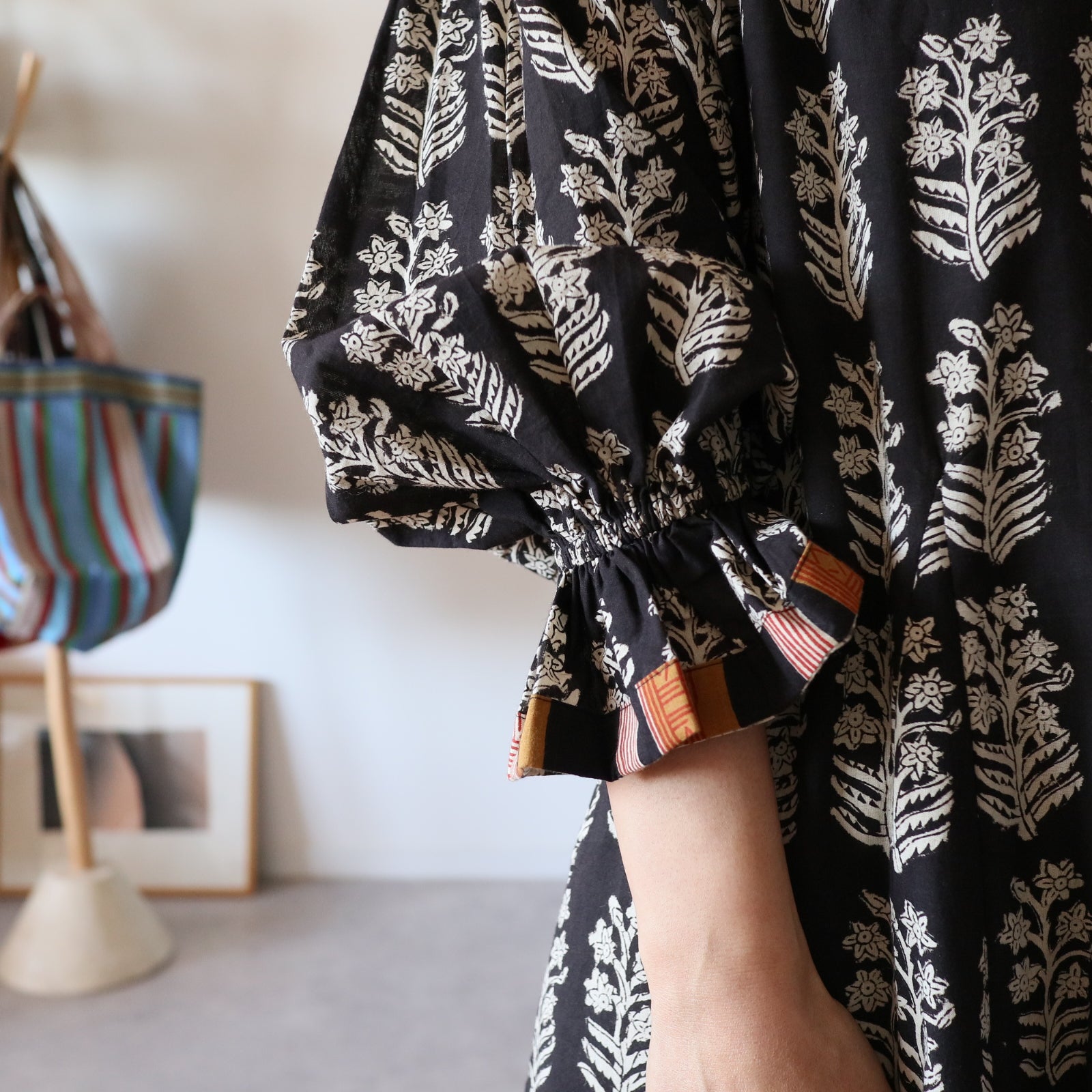日本から遠く離れたインドの工房で一から全ての工程を一枚一枚プロの職人さんが仕立てた、ハンドブロックプリントワンピース。