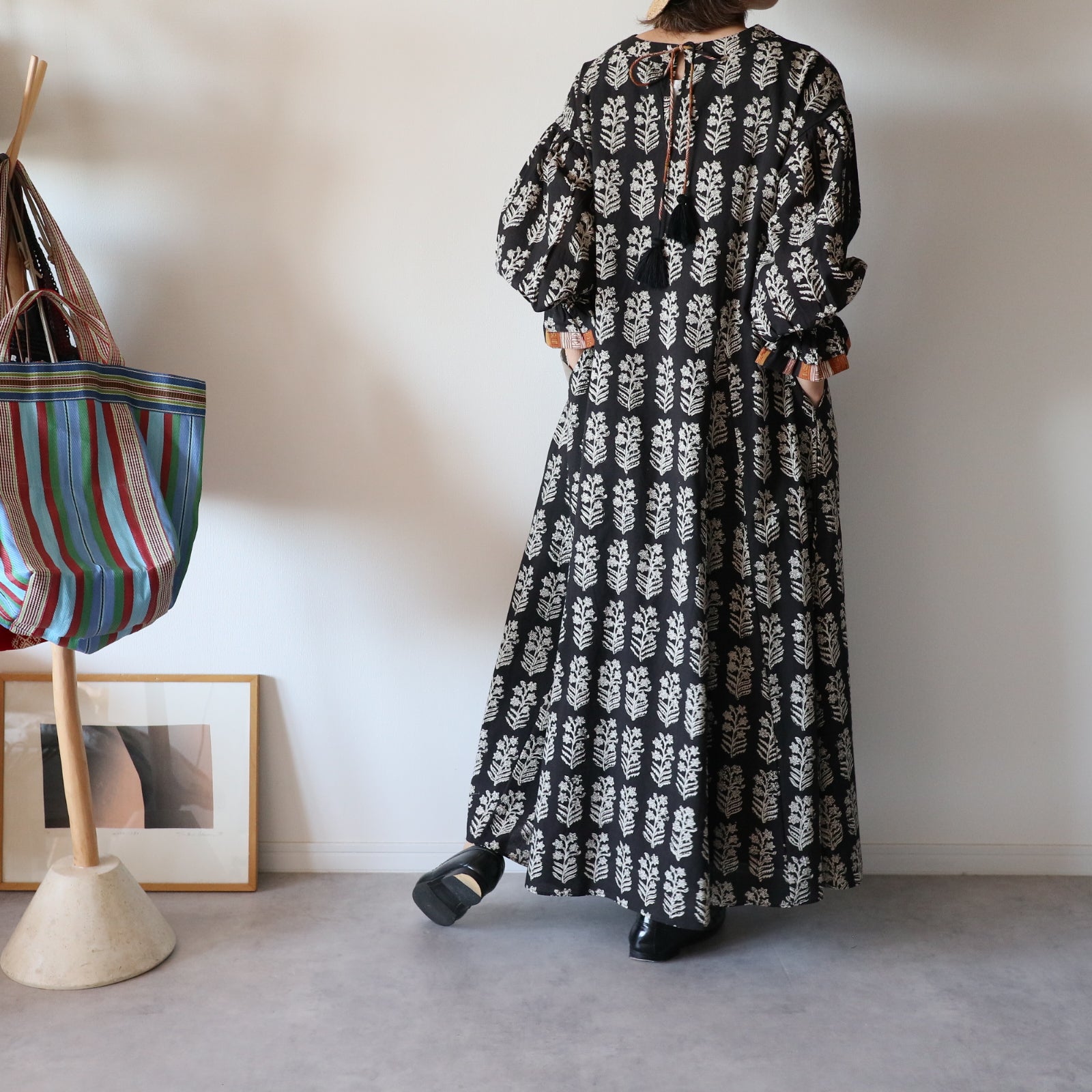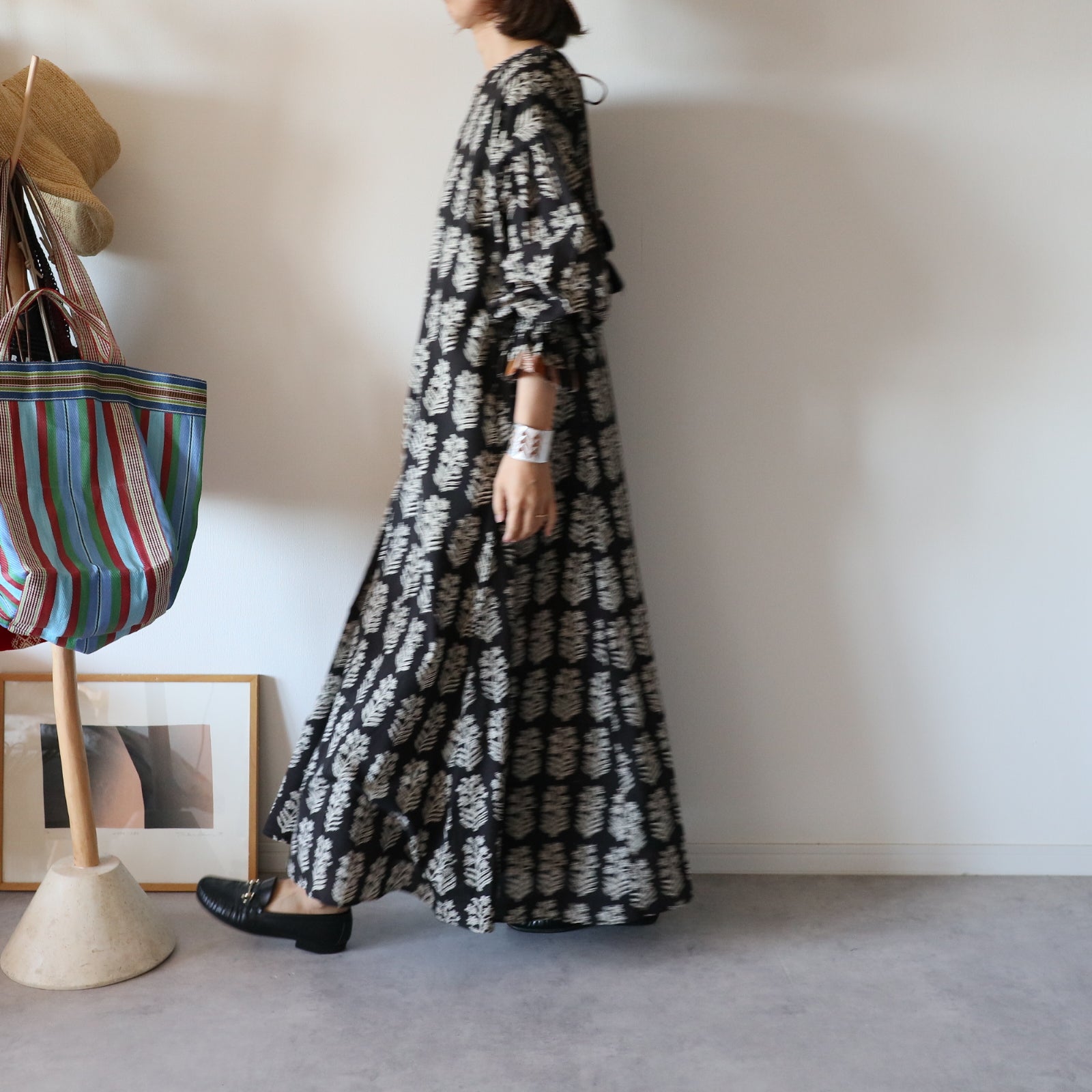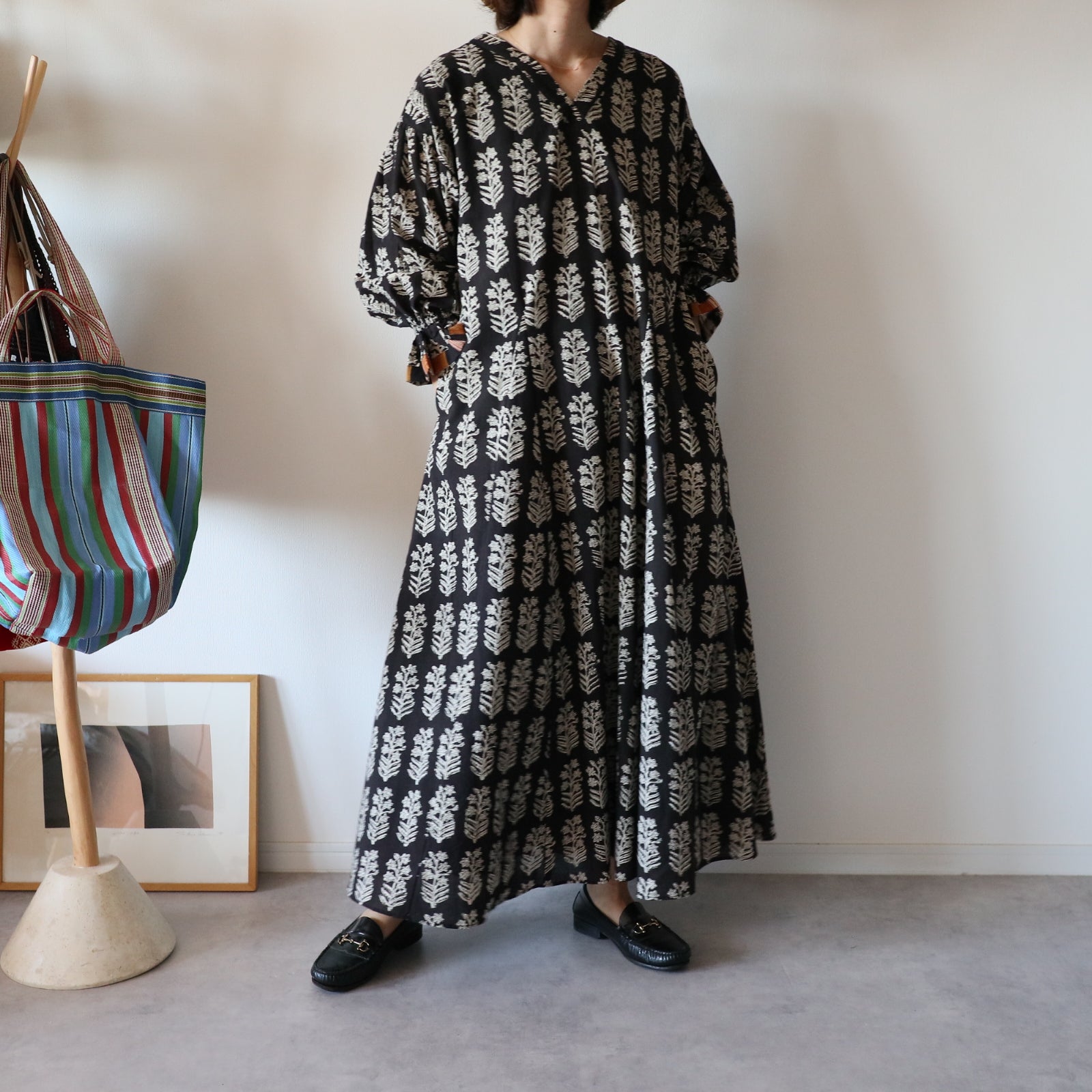 日本から遠く離れたインドの工房で一から全ての工程を一枚一枚プロの職人さんが仕立てた、ハンドブロックプリントワンピース。
