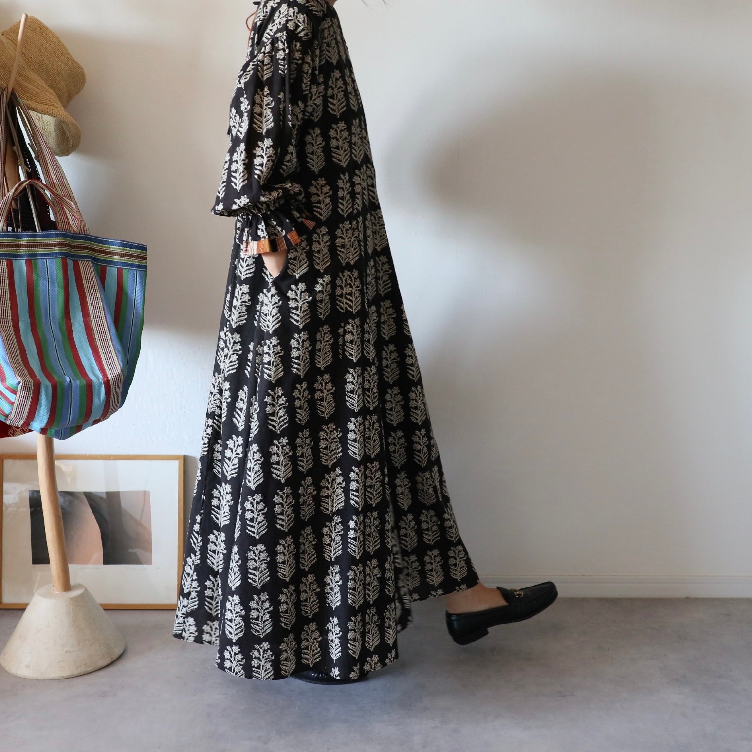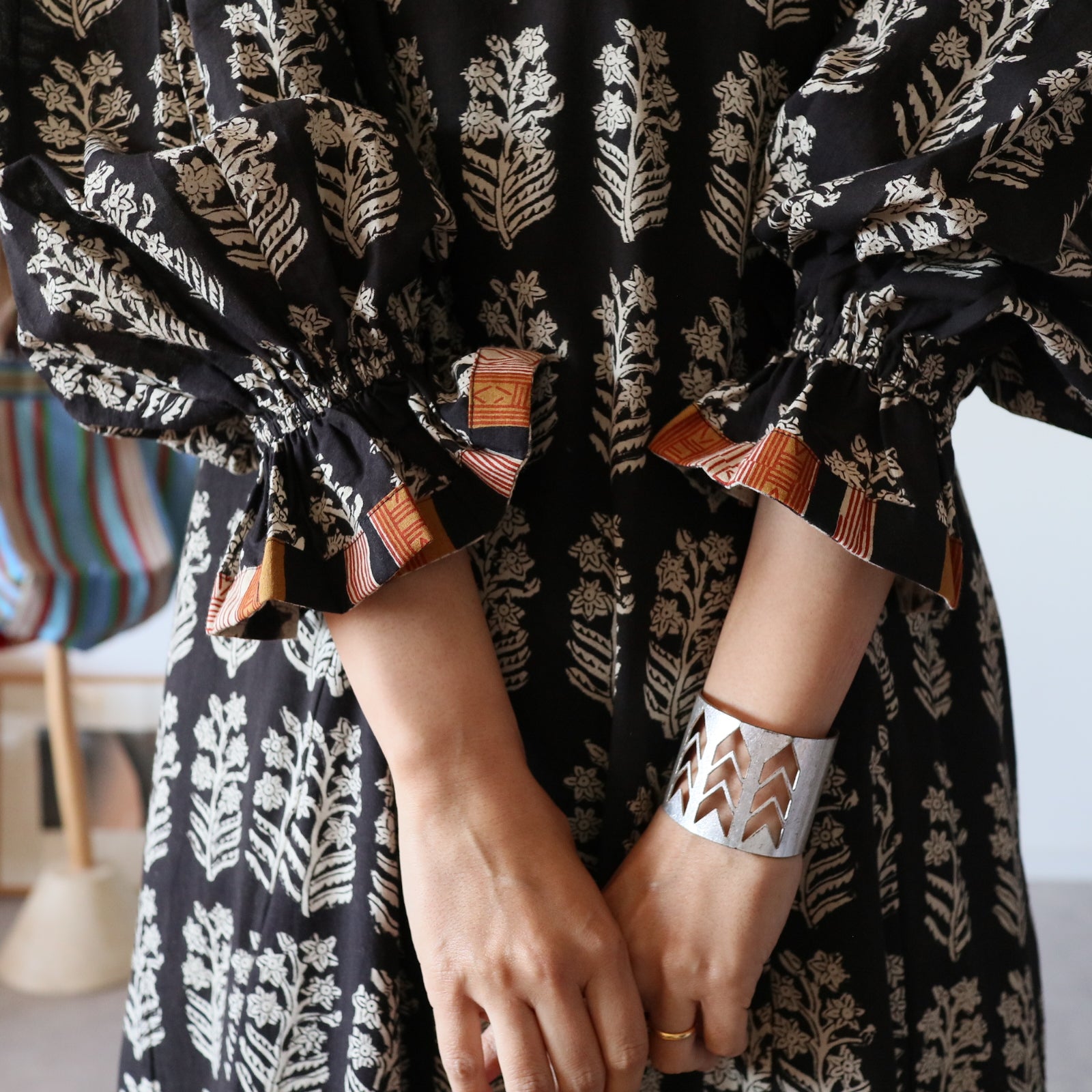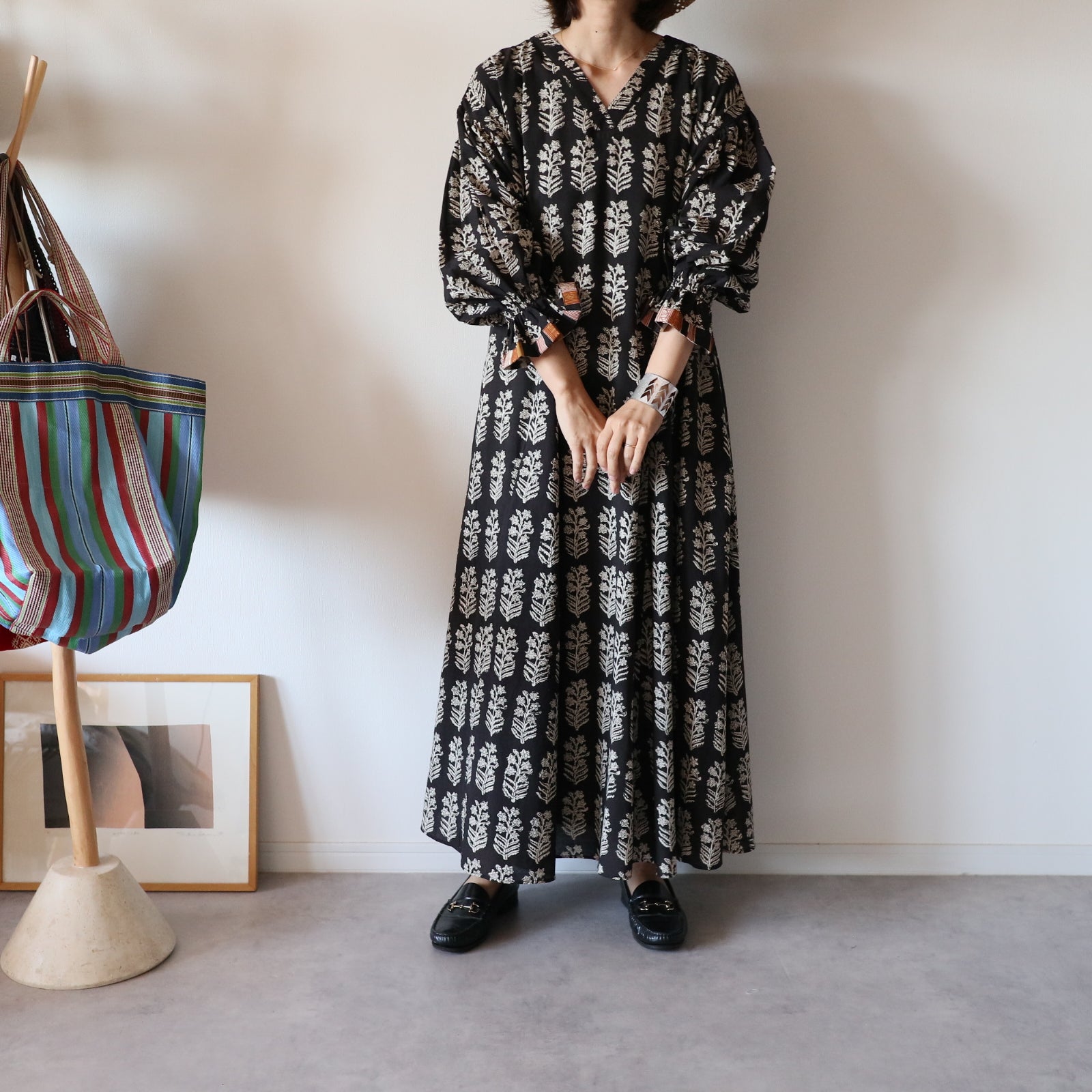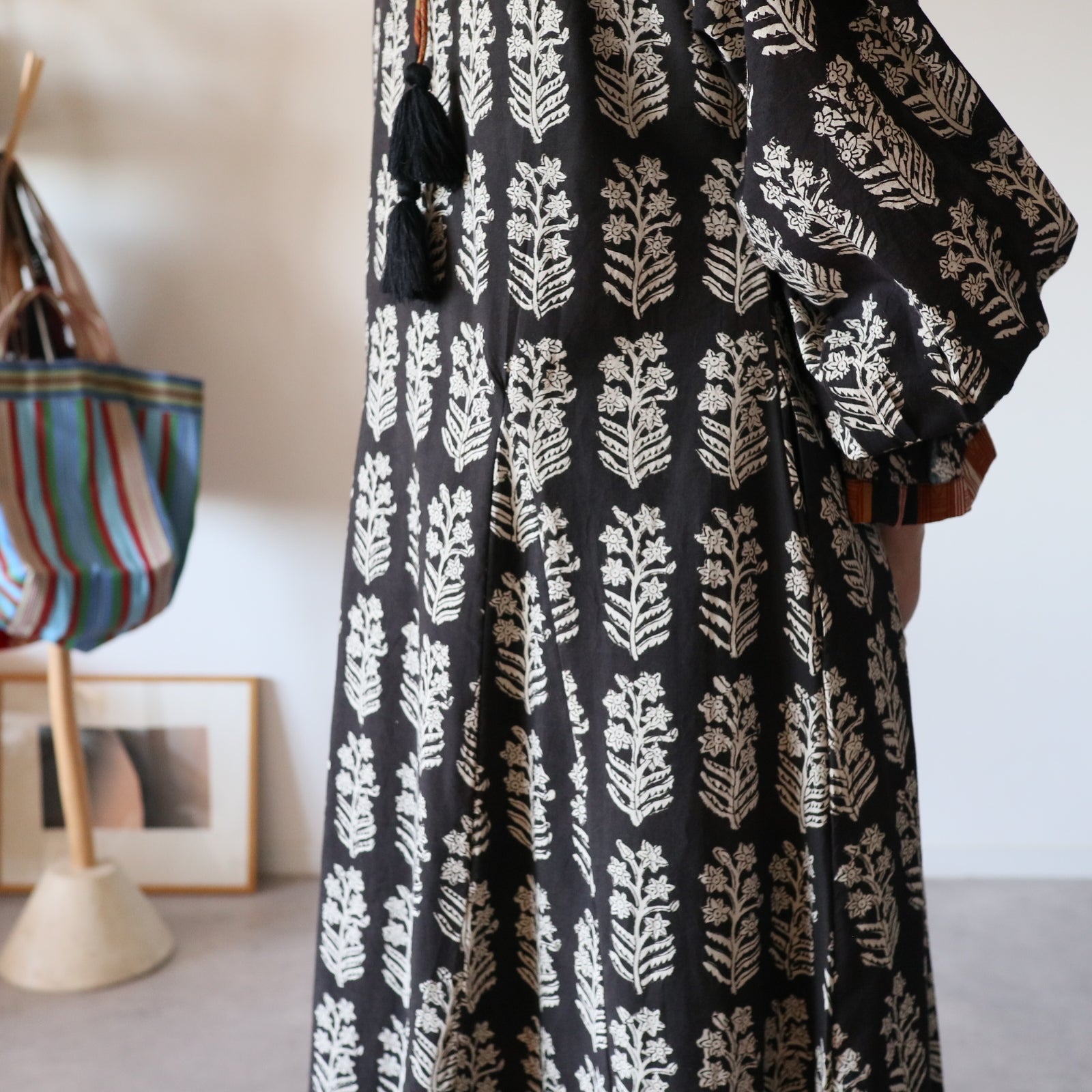 日本から遠く離れたインドの工房で一から全ての工程を一枚一枚プロの職人さんが仕立てた、ハンドブロックプリントワンピース。