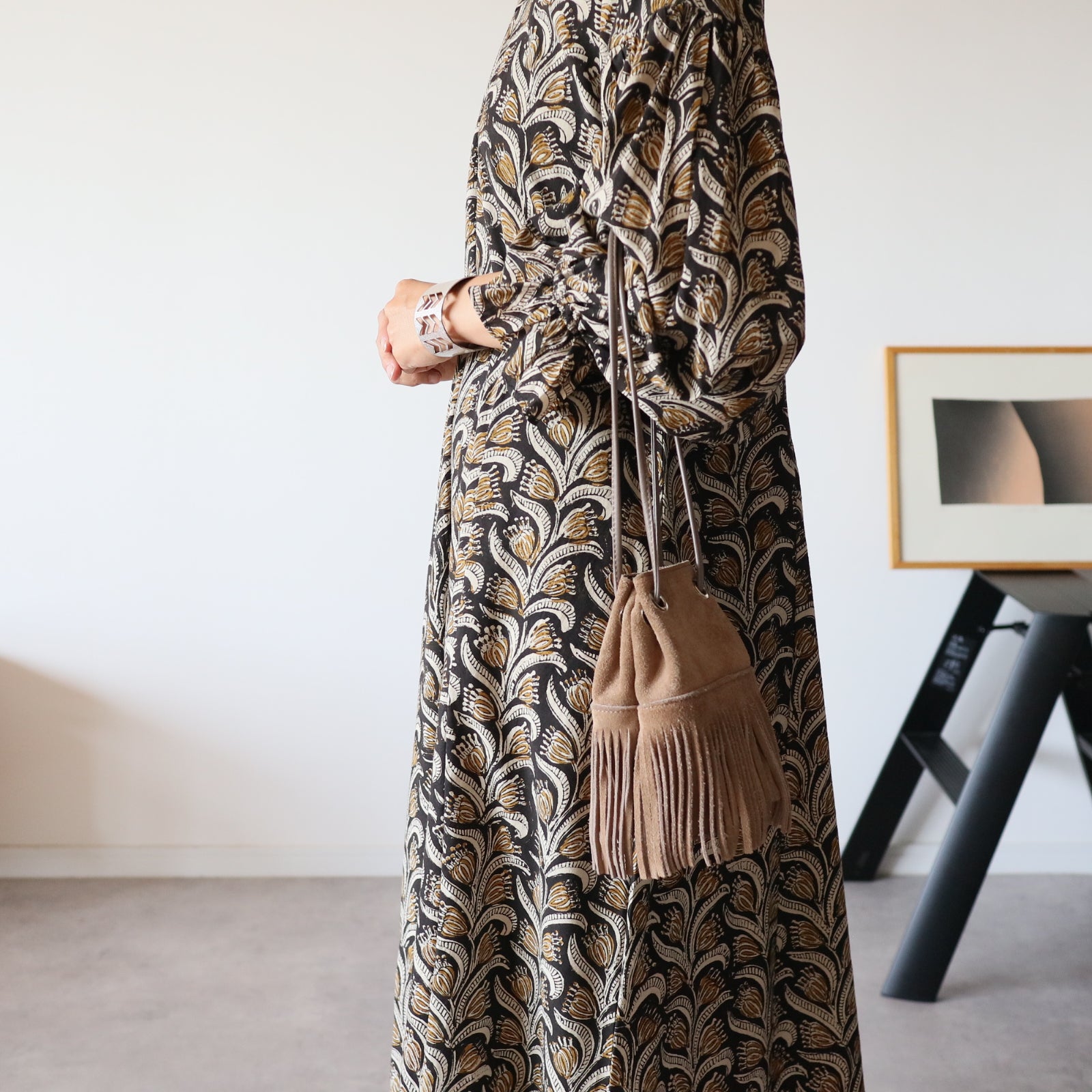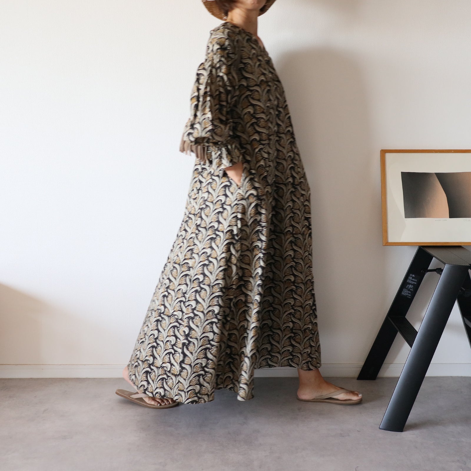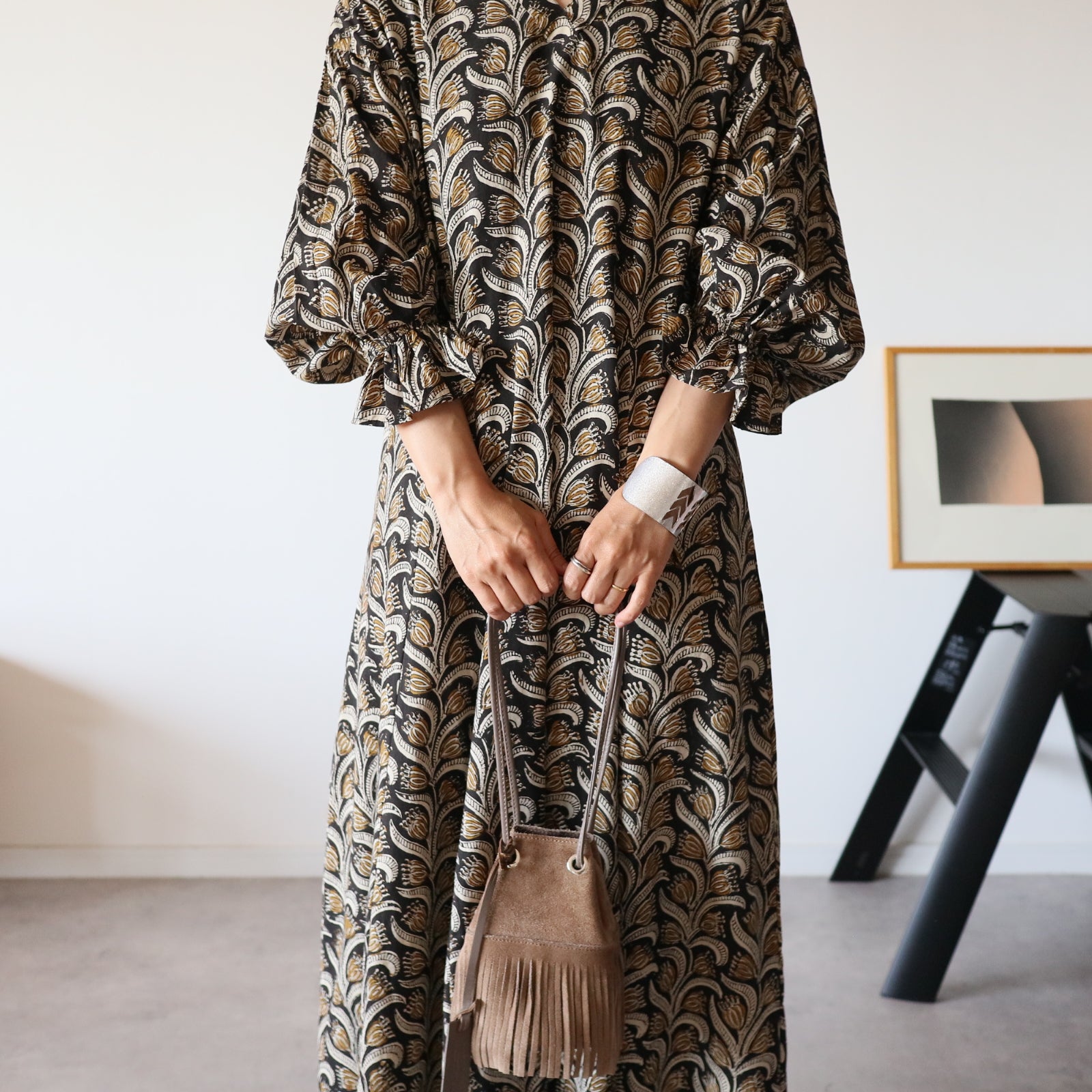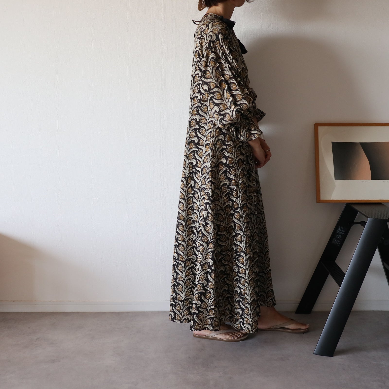 日本から遠く離れたインドの工房で一から全ての工程を一枚一枚プロの職人さんが仕立てた、ハンドブロックプリントワンピース。