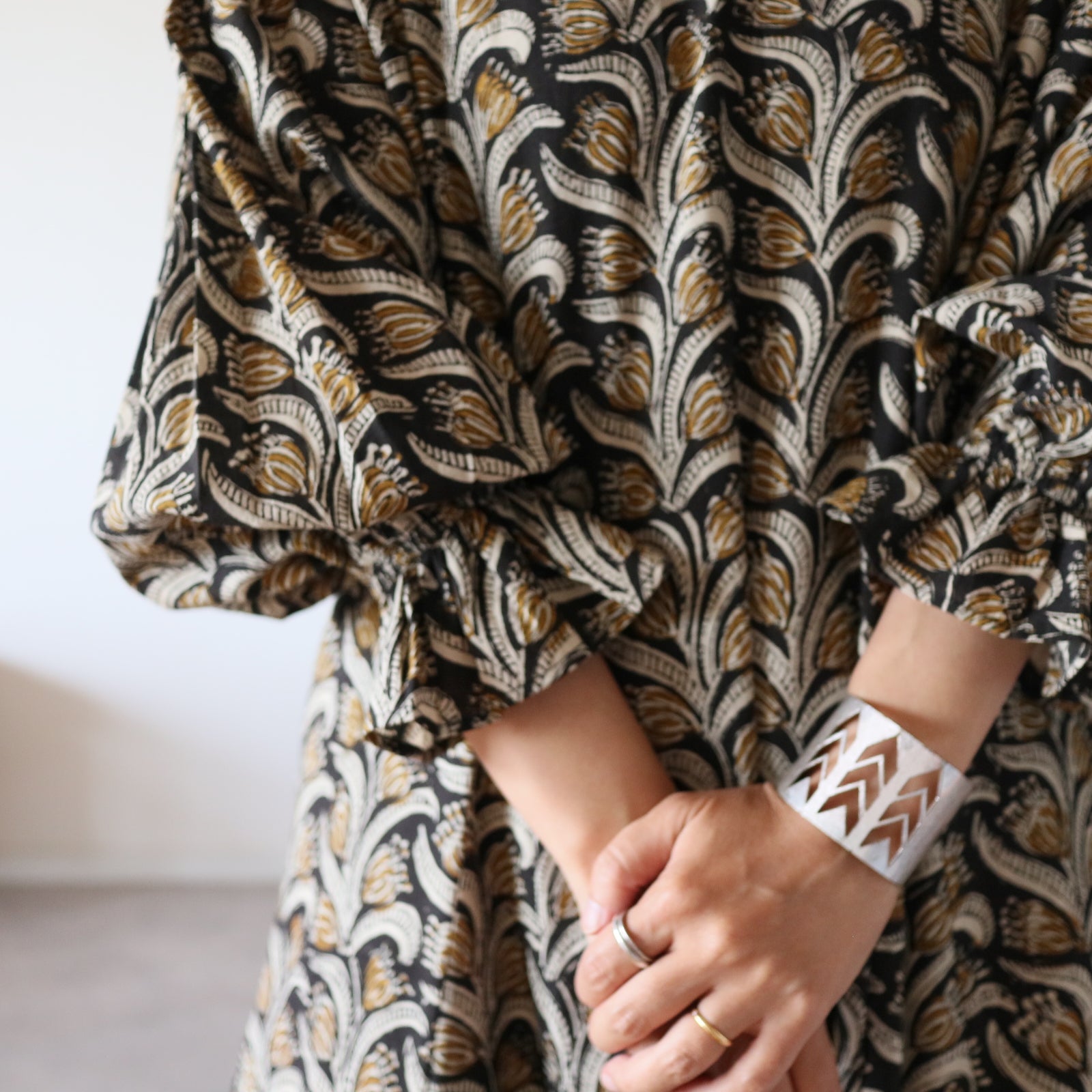 ハンドブロックプリントは色の移り変わりや生地が徐々に柔らかく馴染んでいく変化も楽しみの一つです。正しいお手入れ方法で長く着て頂けることを願っています。(手洗いは慣れてしまえば短時間で簡単にできます)